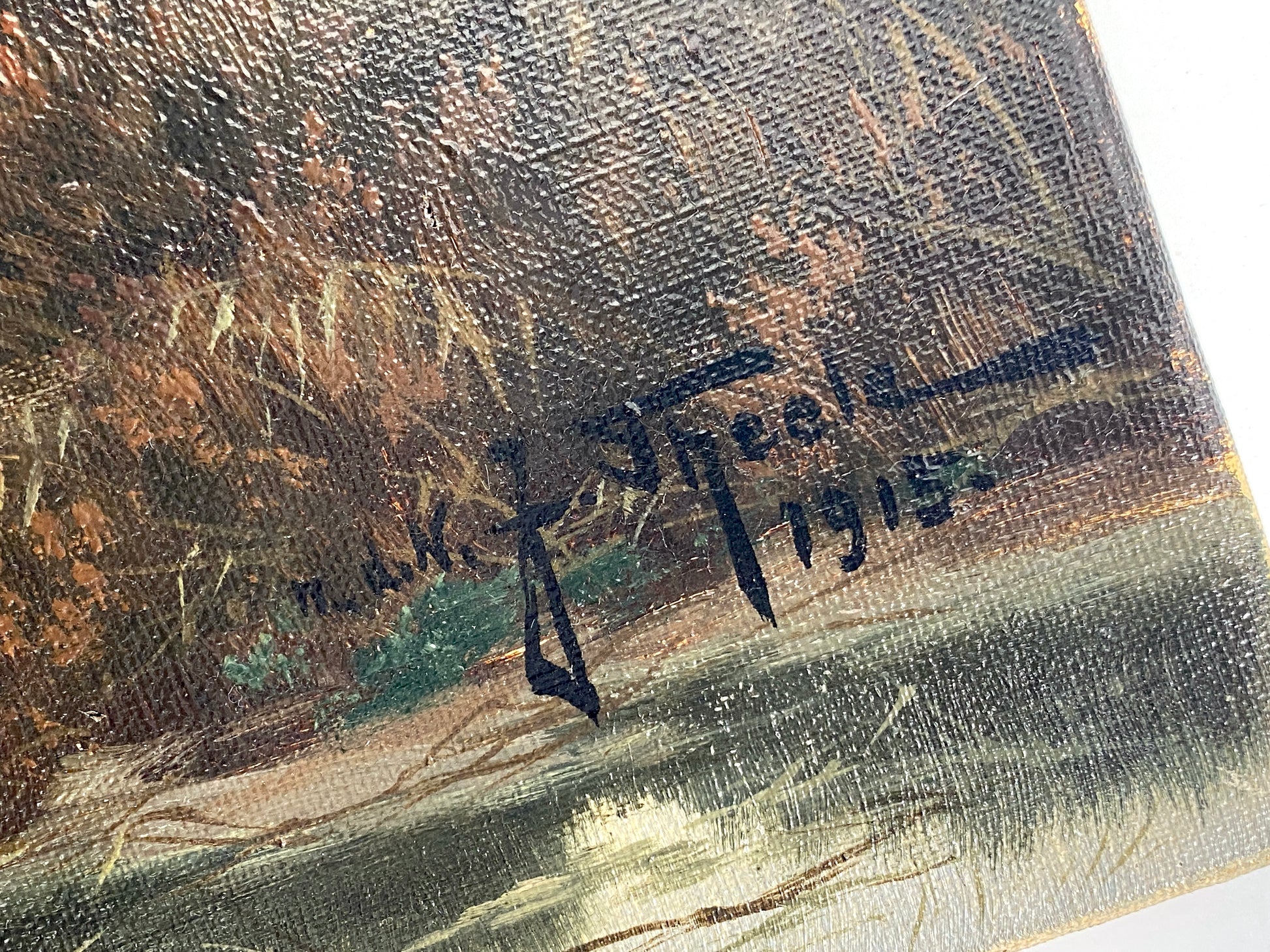 Ölgemälde "Landschaft bei Dämmerung" von John Theele aus dem Jahr 1915