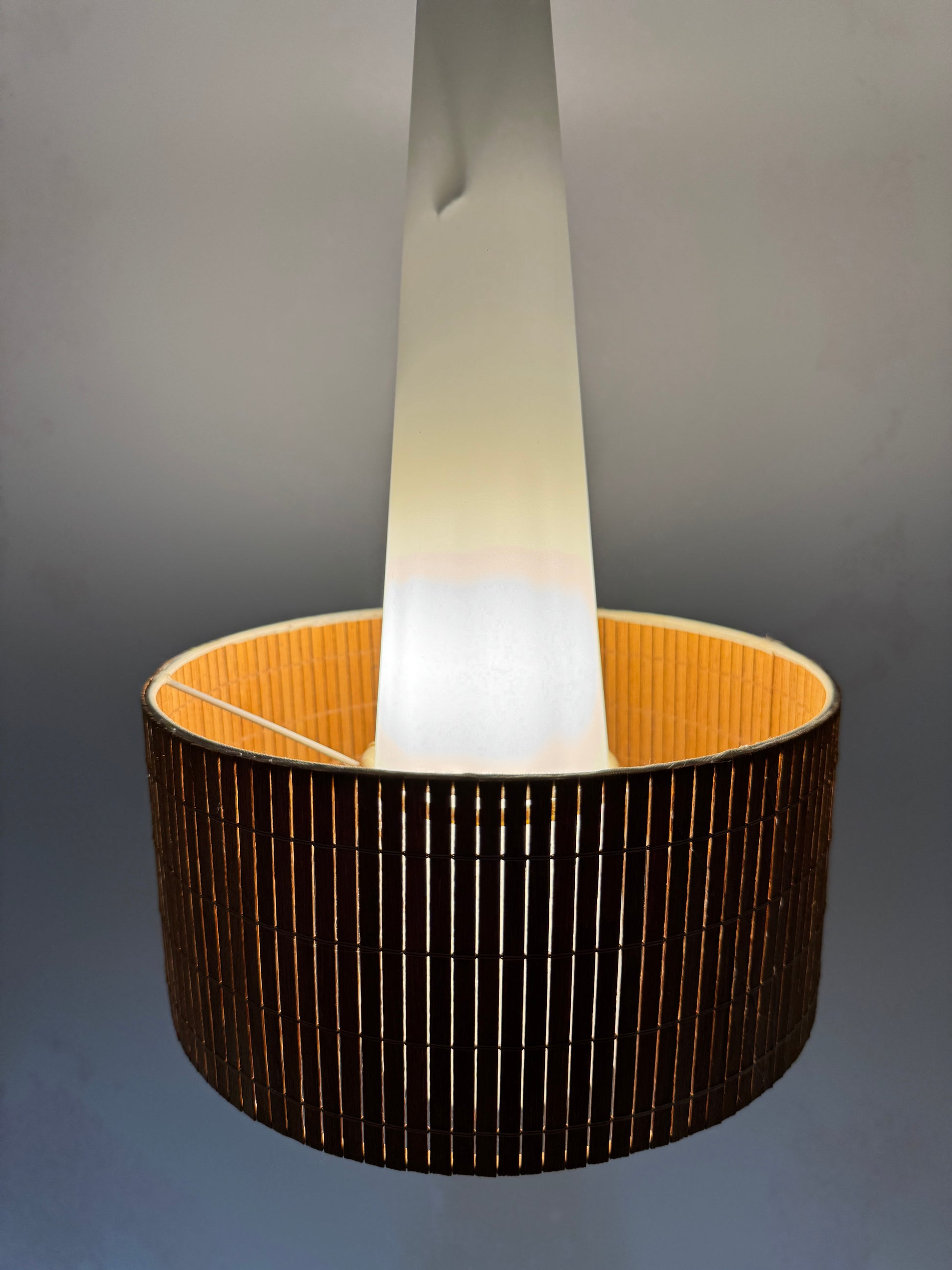 MID CENTURY HÄNGELAMPE PENDELLEUCHTE DANISH DESIGN TEAKHOLZ GLAS 60er VINTAGE