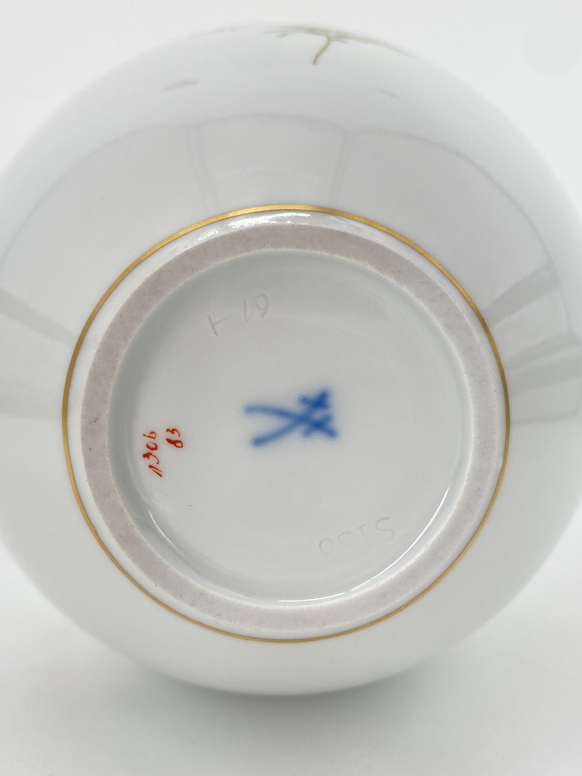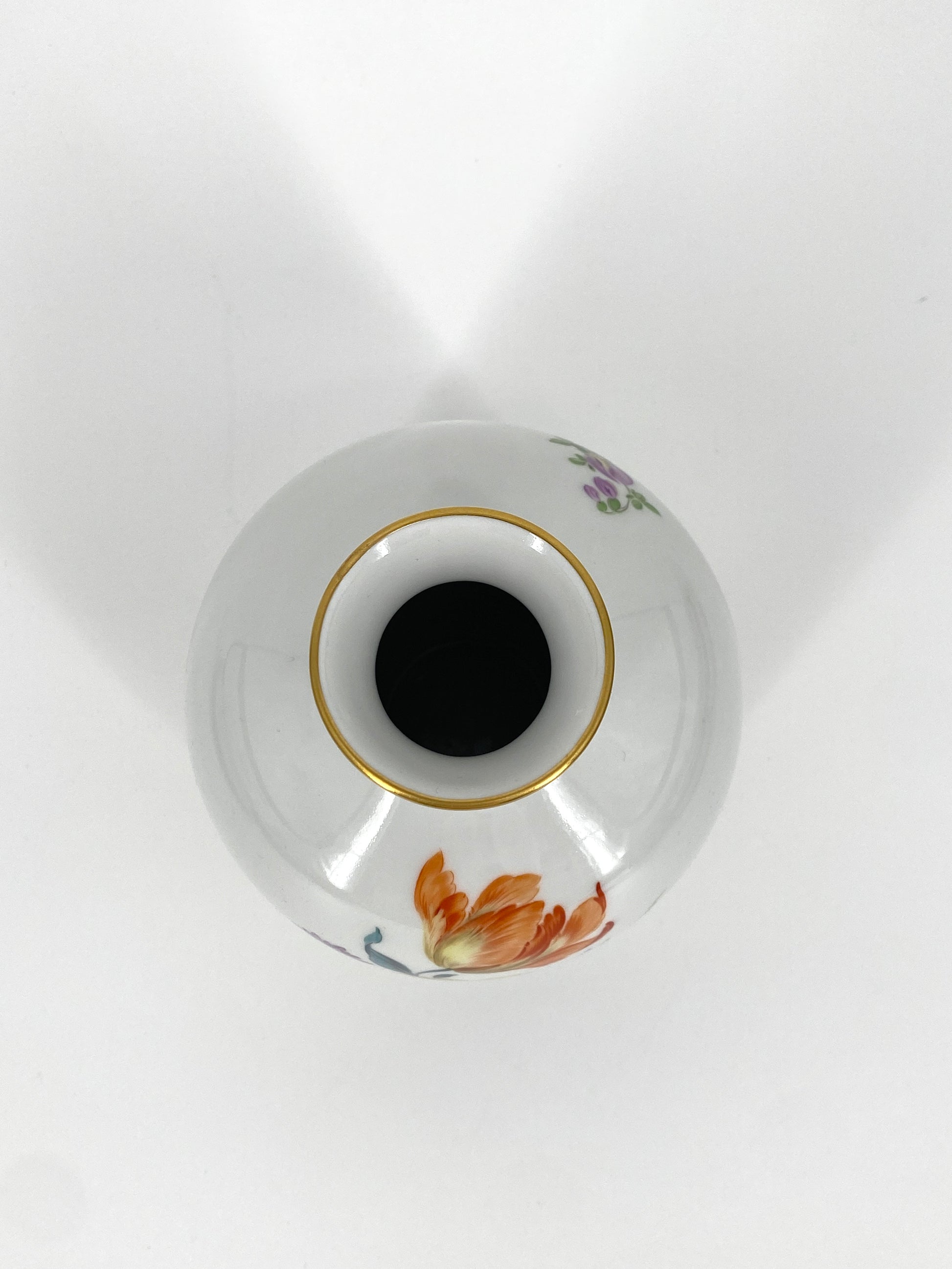 * MEISSEN PORZELLAN VASE BLUMEN BOUQUET MALEREI GOLDRAND 15CM