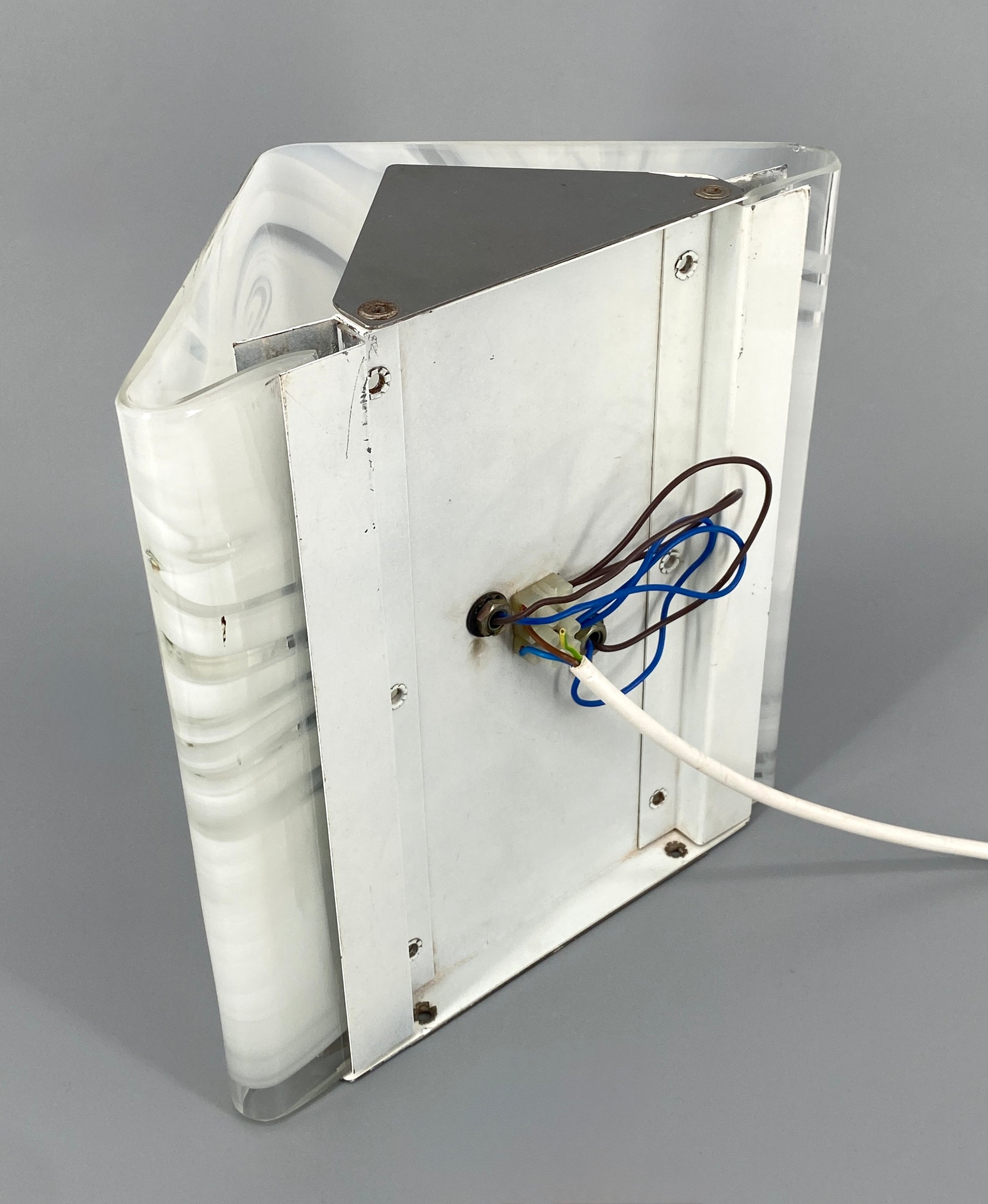 * WANDLAMPE MARMORIERTES GLAS OPALGLAS MURANO DREIECK 80ER VINTAGE ITALIEN