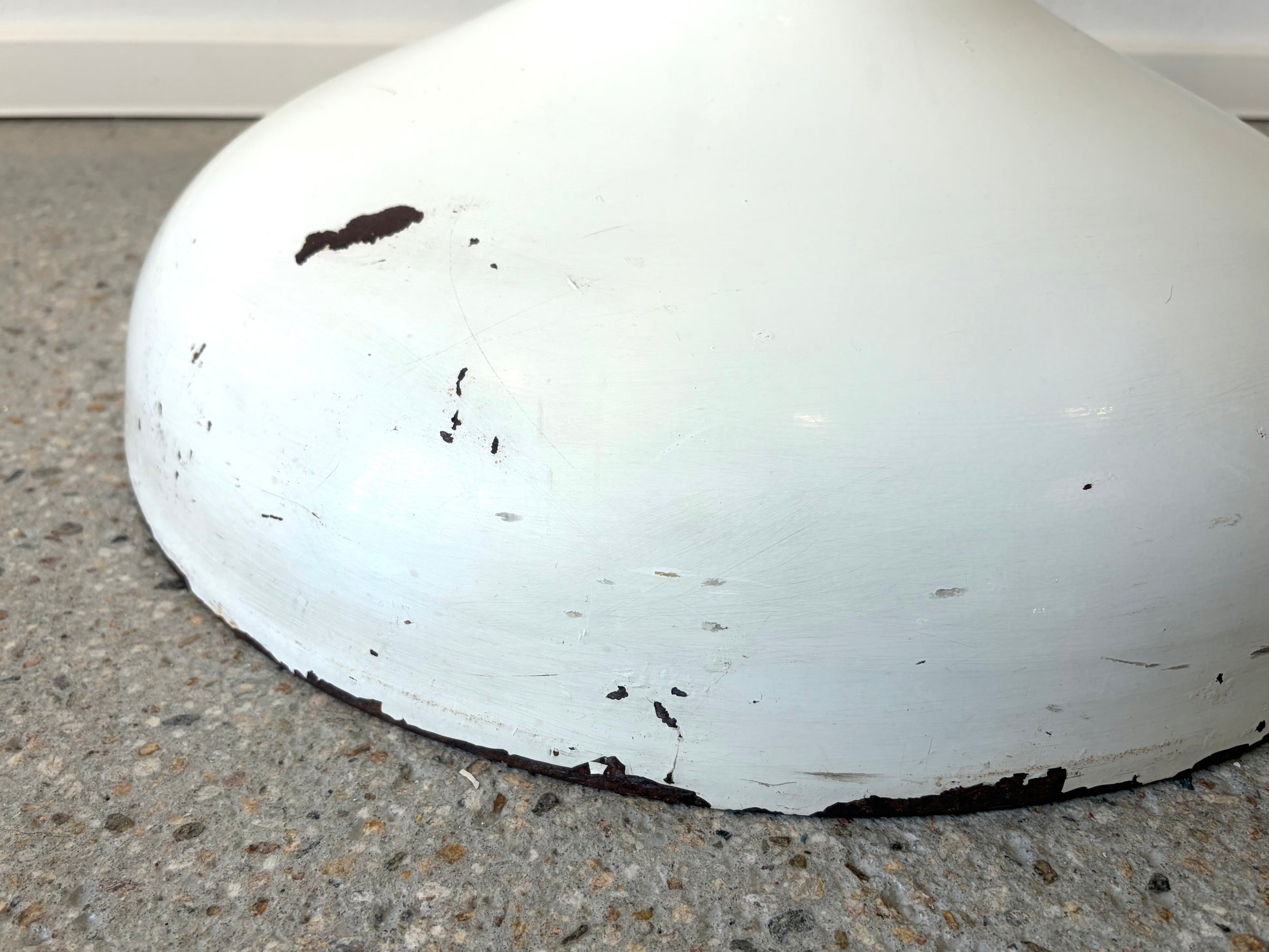 * mit deutlichen Alters,-und Benutzungspuren. Patina. Kratzer und Flugrost am Sockel und Schirm . Siehe Fotos.