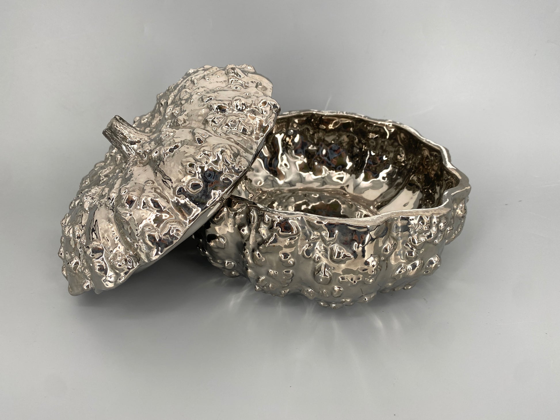 Seltene Deckeldose in Form eines Kürbis, verchromt, von DID DaDo Industrial Design Milano, Italien 1970er