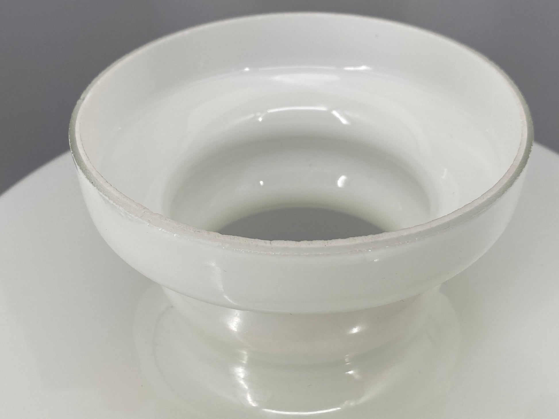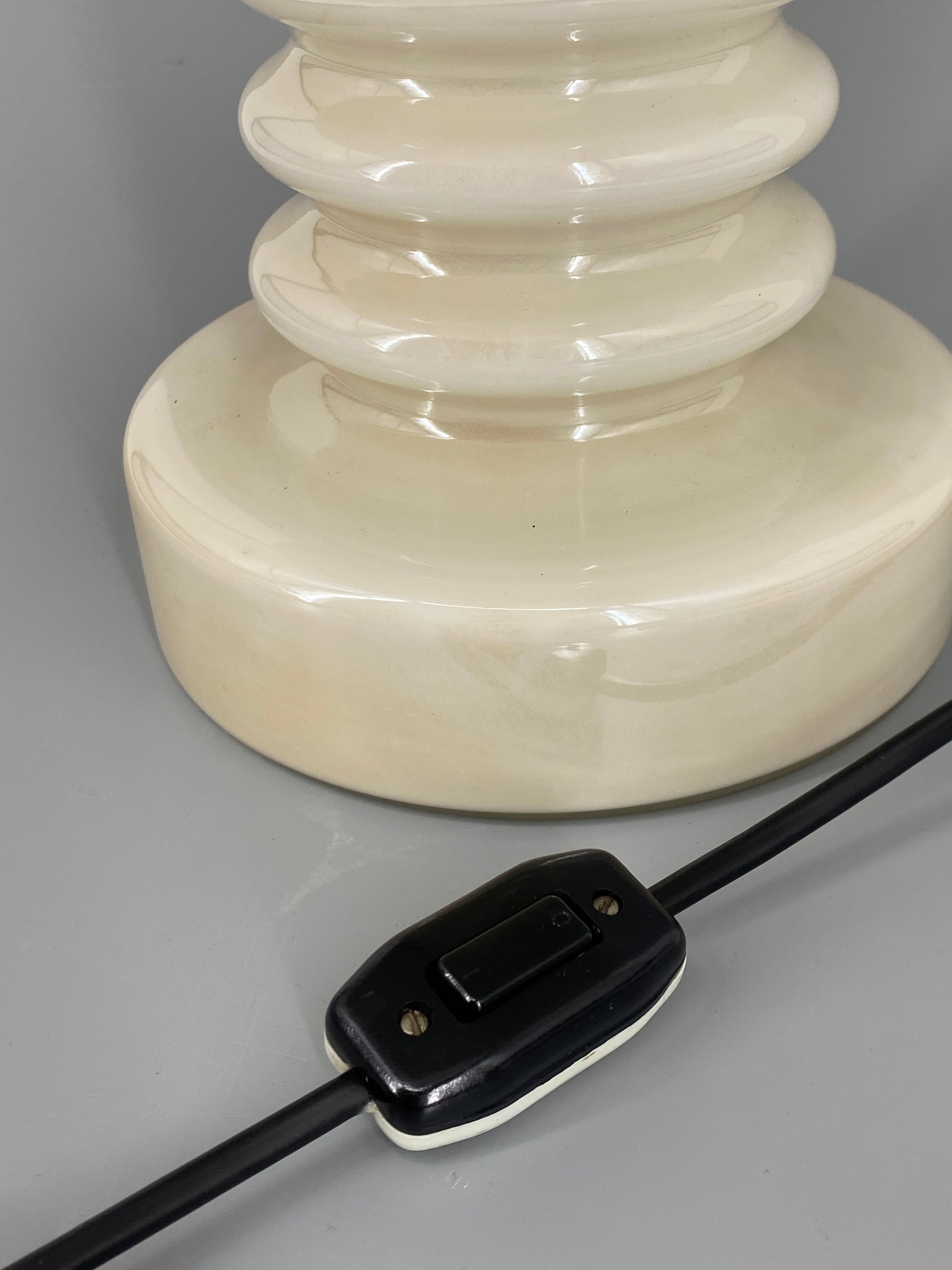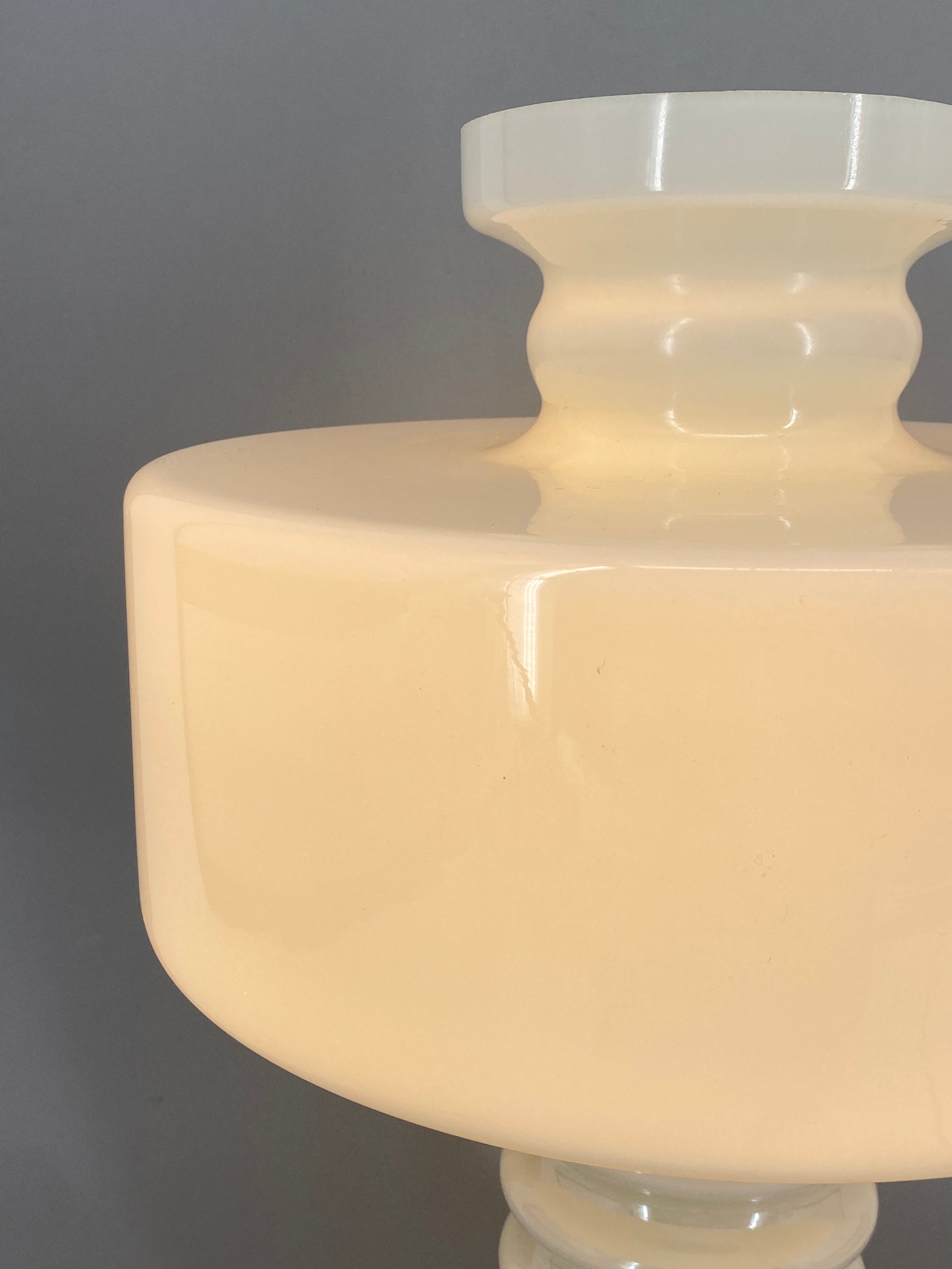 * weißer Glasschirm und Glasfuß mit eiener irisierenden Oberfläche, weie Perlmutt