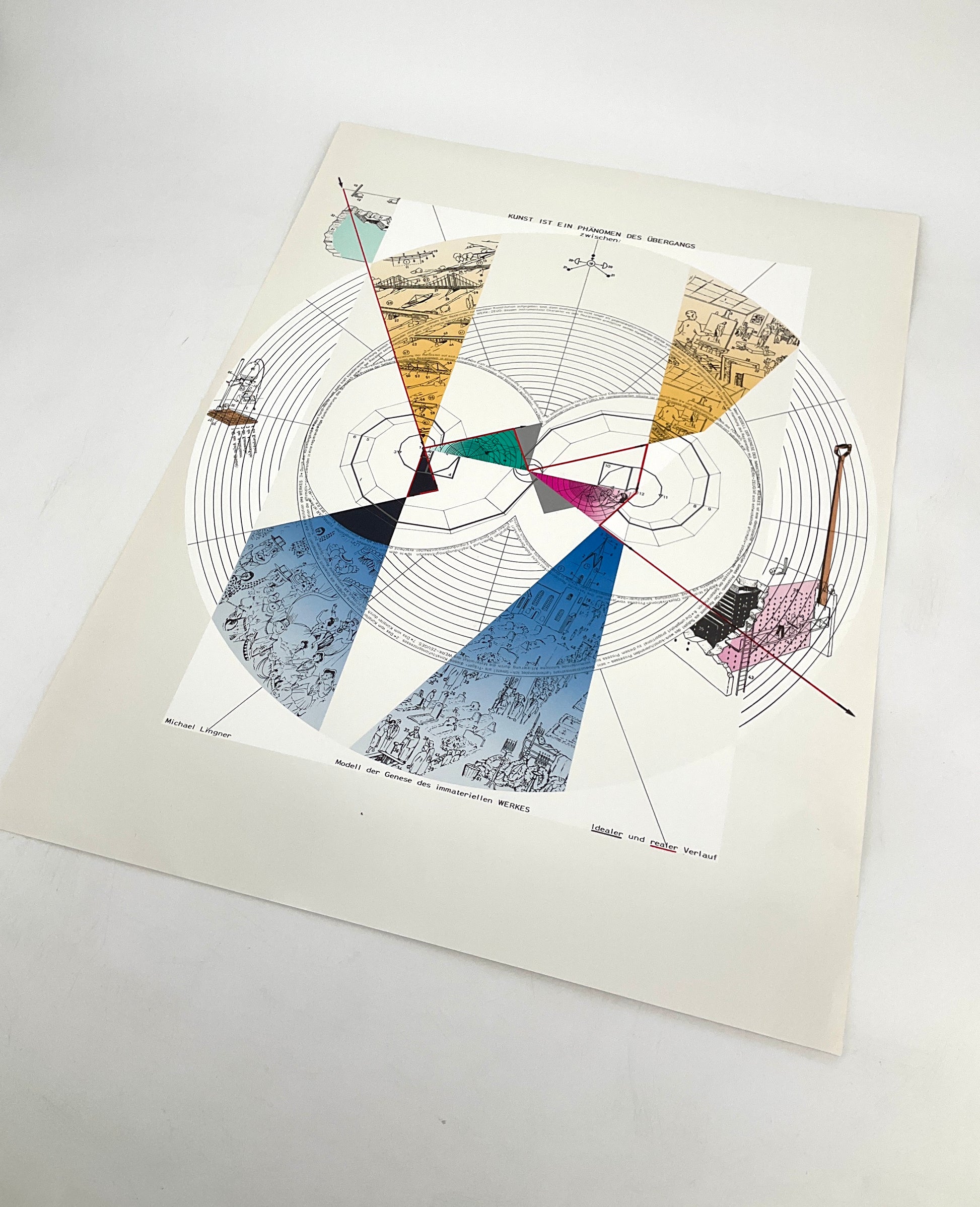 Sieb- und Offsetdruck "Modell der Genese des immateriellen Werkes" von Michael Lingner für Griffelkunst, 1988
