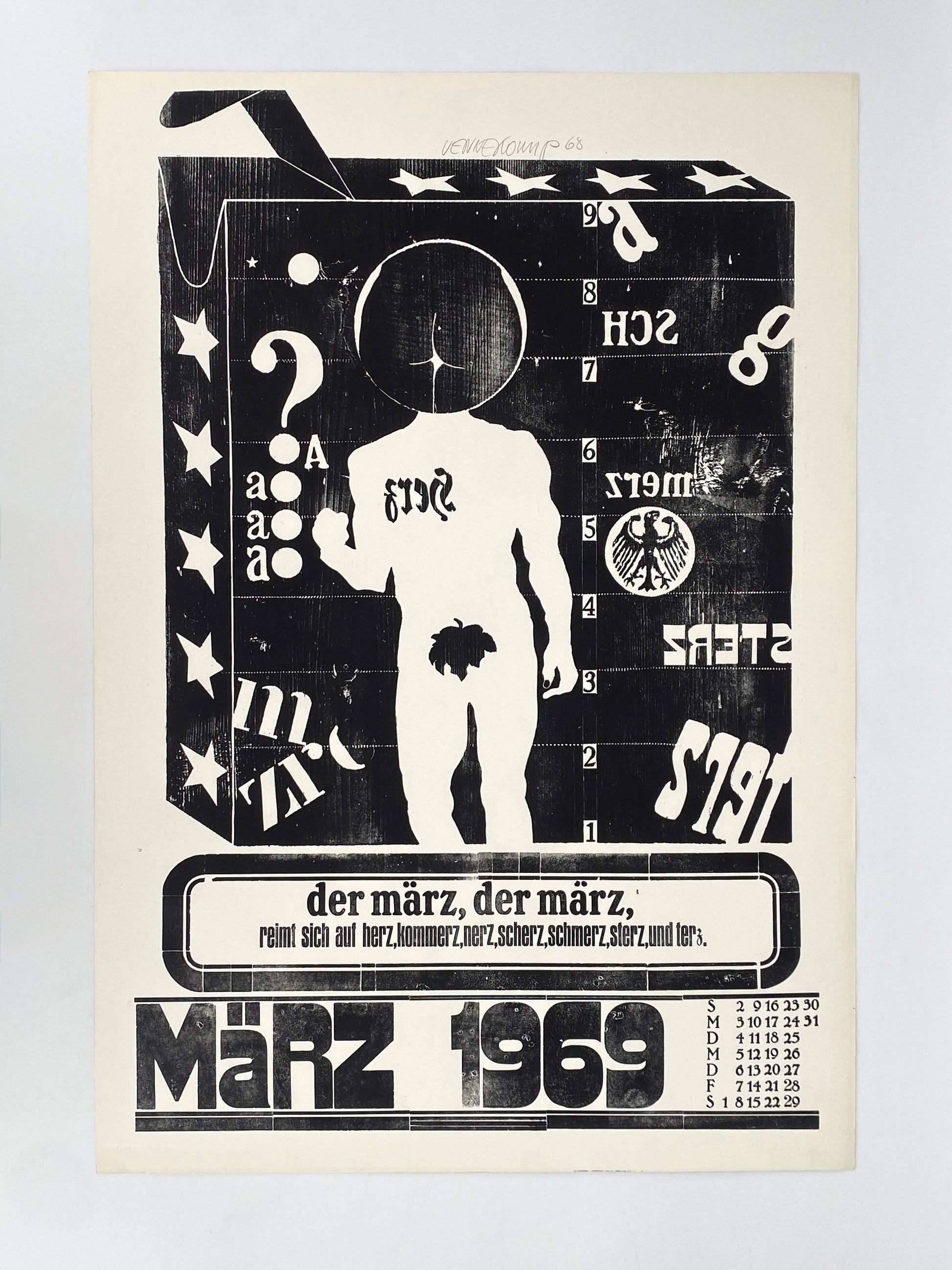 *13x HOLZSCHNITT RIXDORFER DRUCKE BERLIN BILDERKALENDER 1969 ORIGINAL GERHARD RÜHM SIGNIERT NUMMERIERT