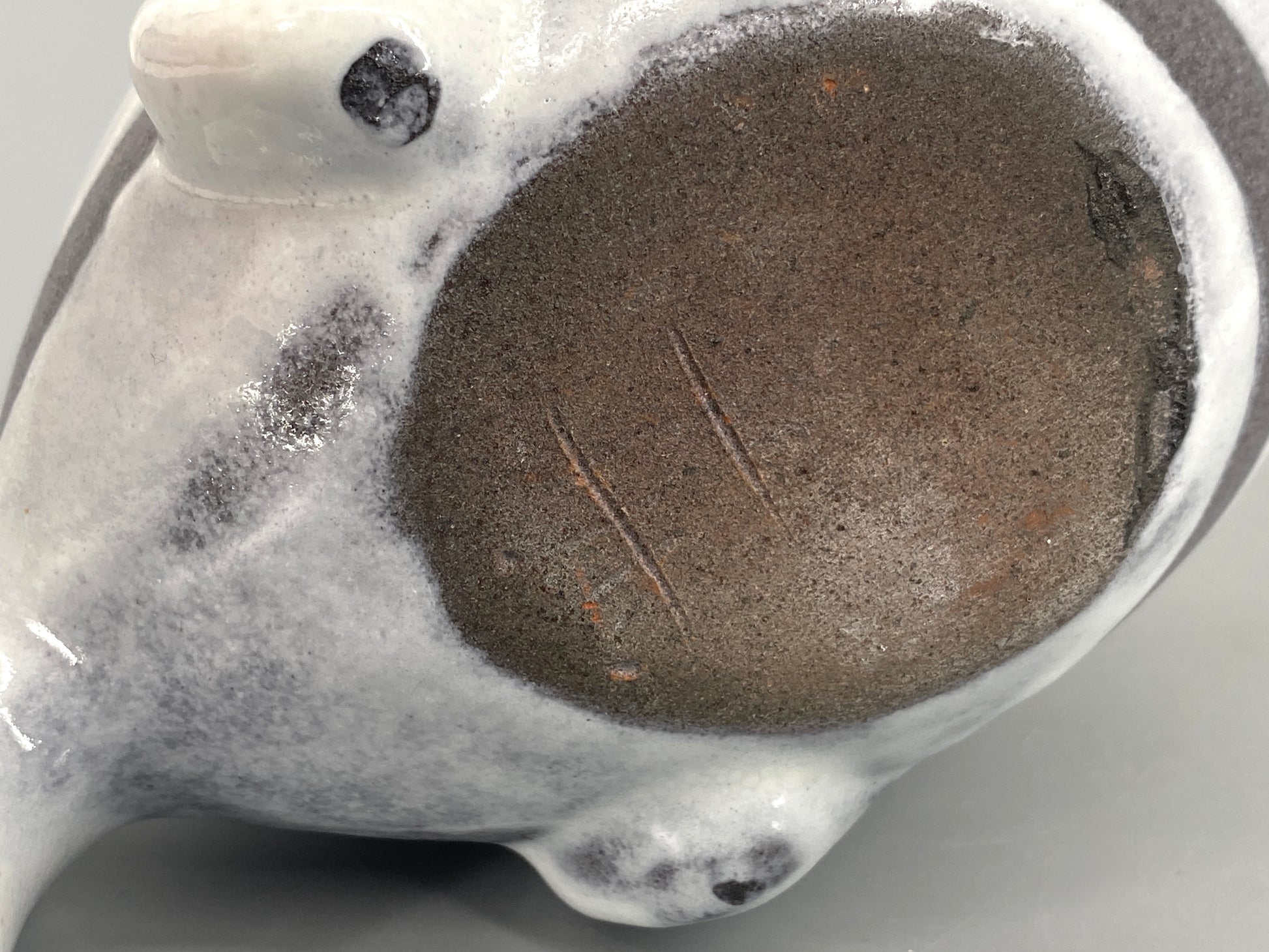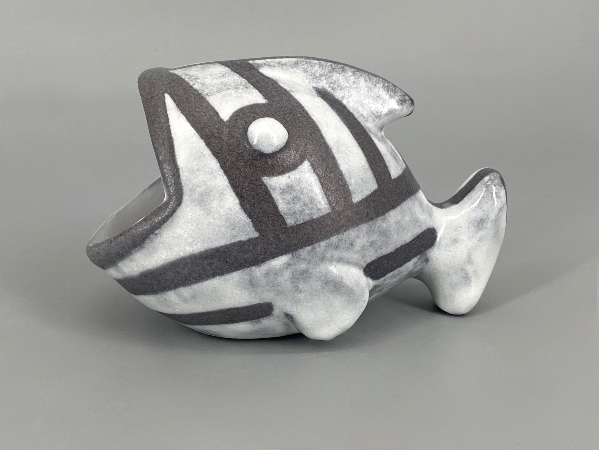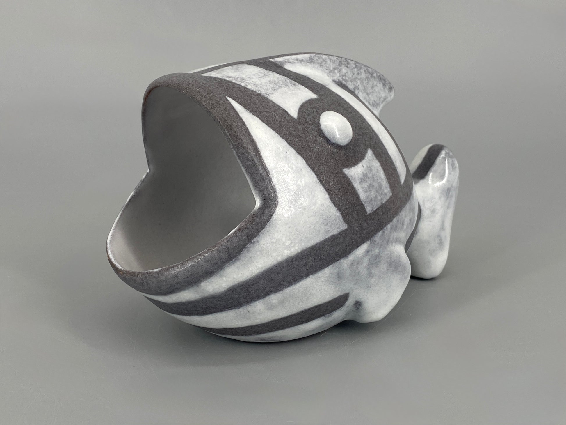 Signierte Keramikfigur "Fisch mit offenem Mund" vermutlich von Birgit Borik, Studiokeramik