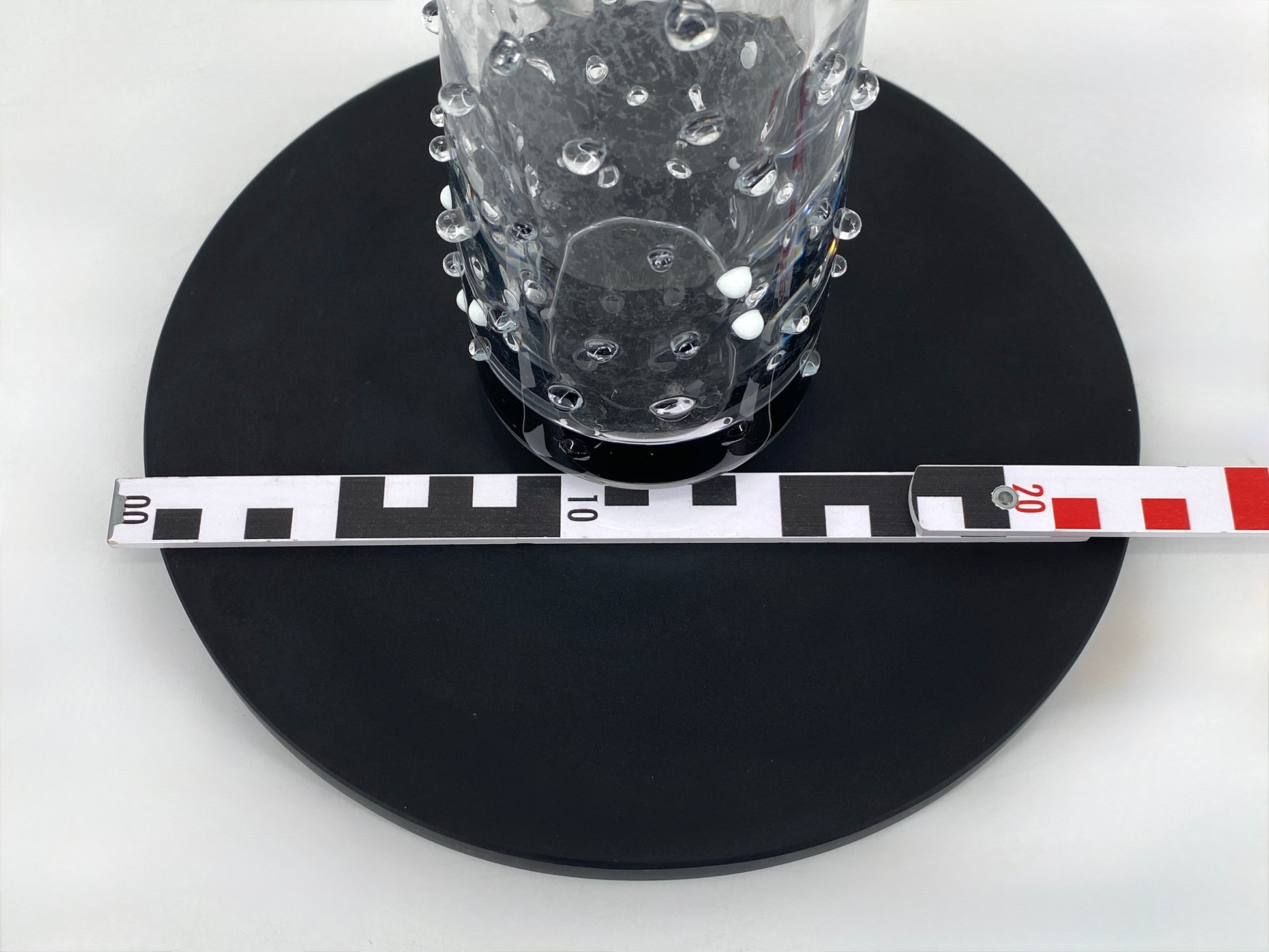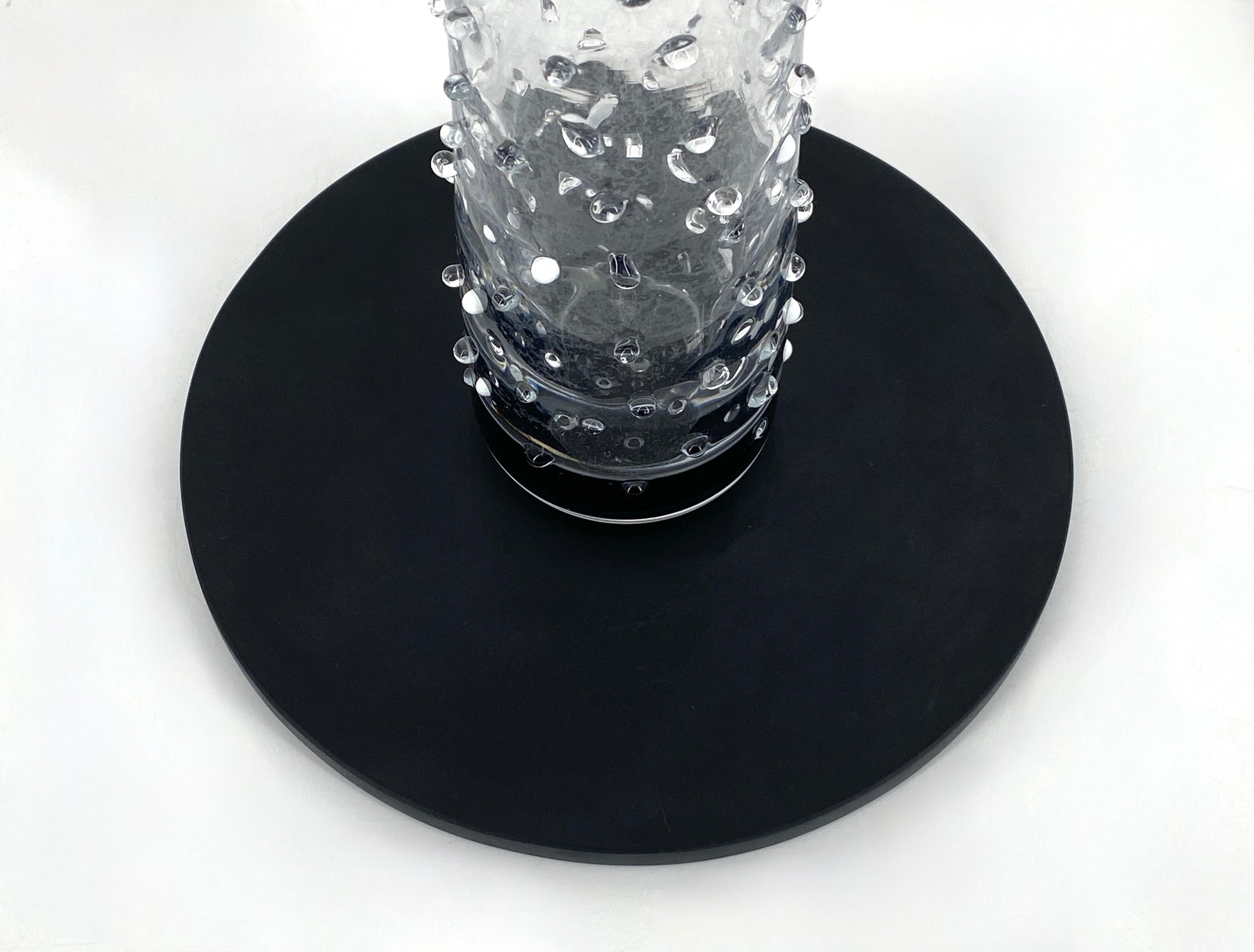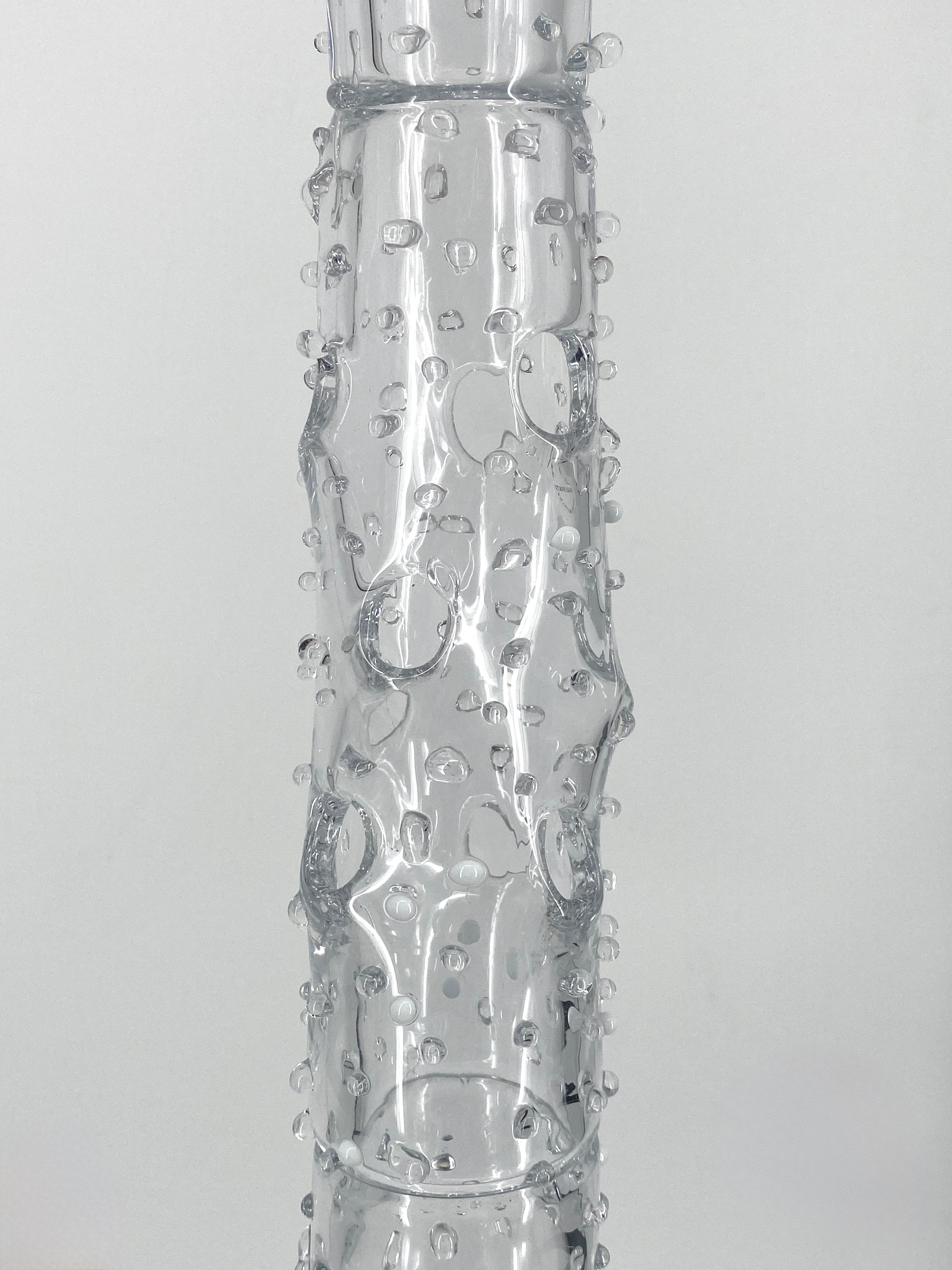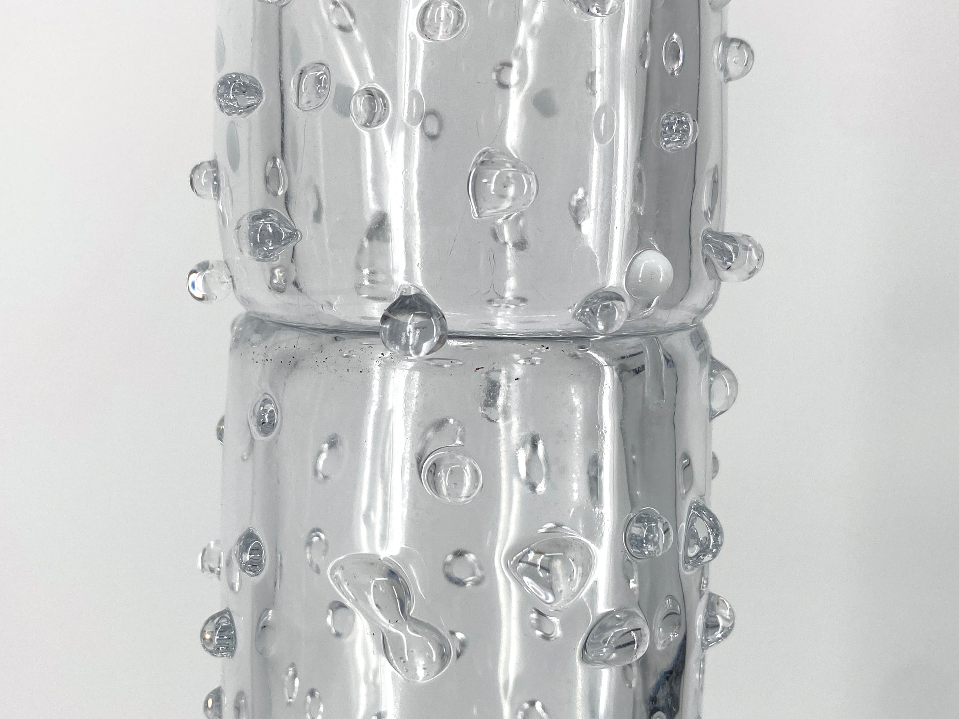 * aus farblosem, mundgeblasenem Muranoglas mit transparenten und weißen Glastropfen