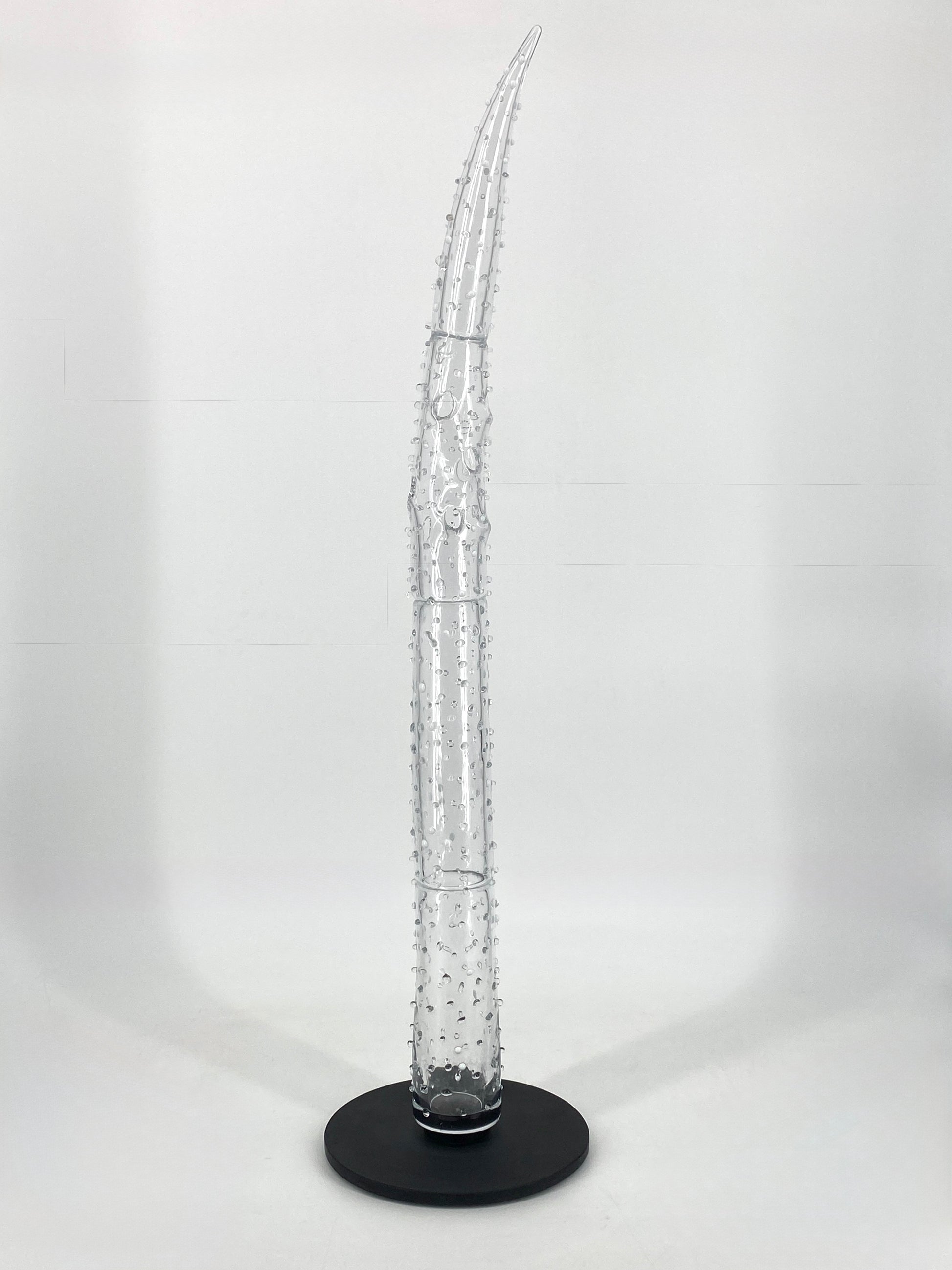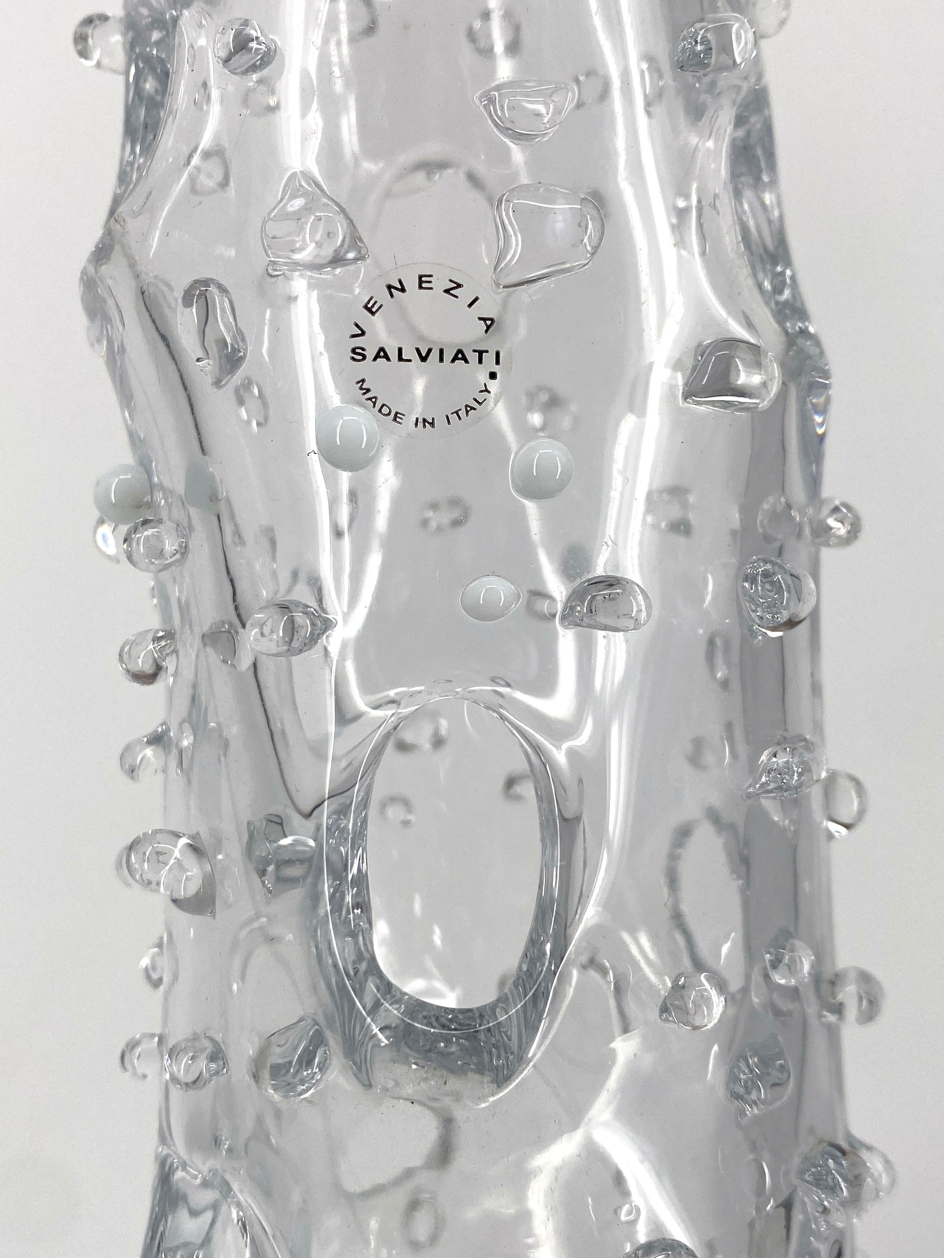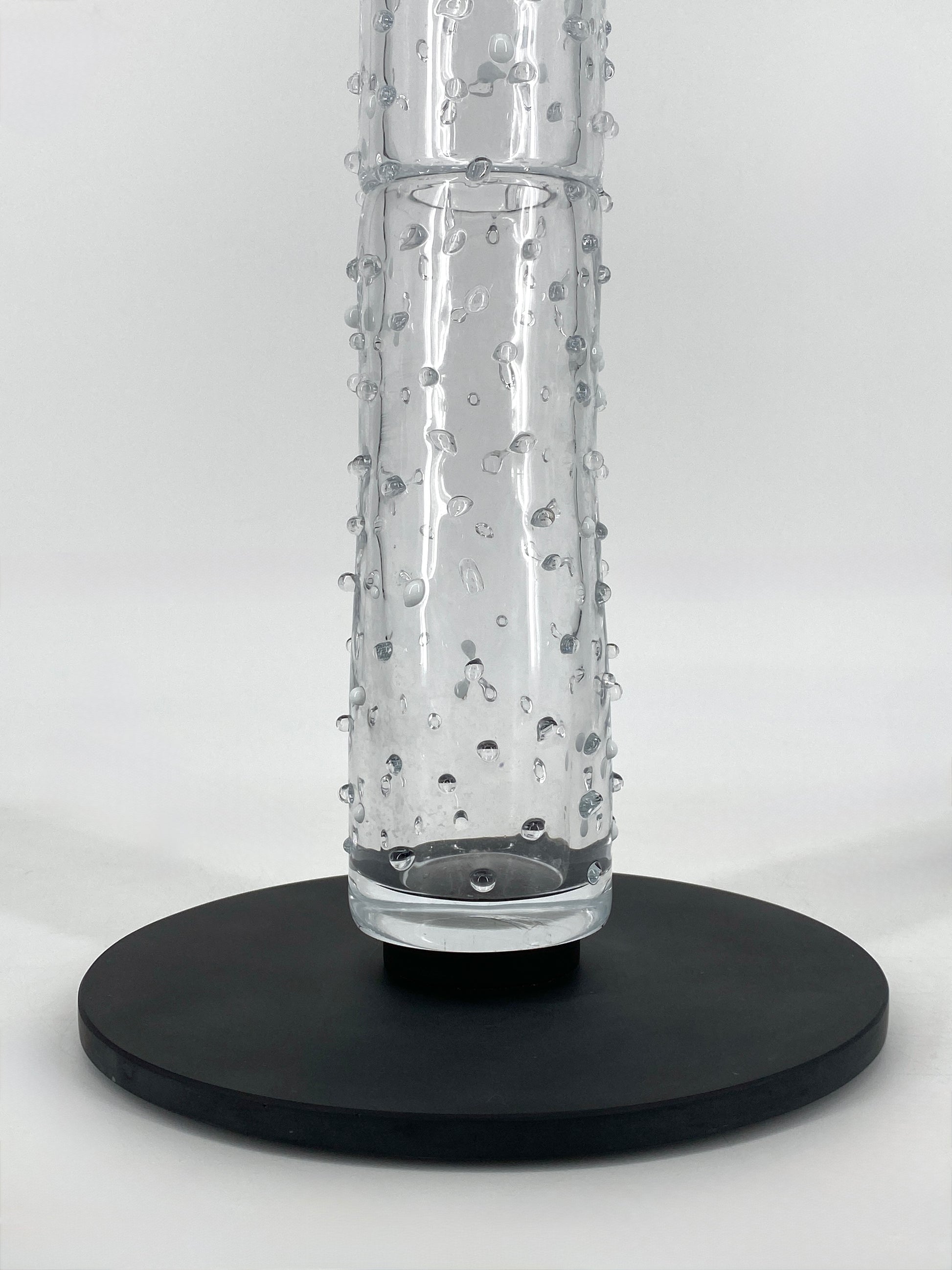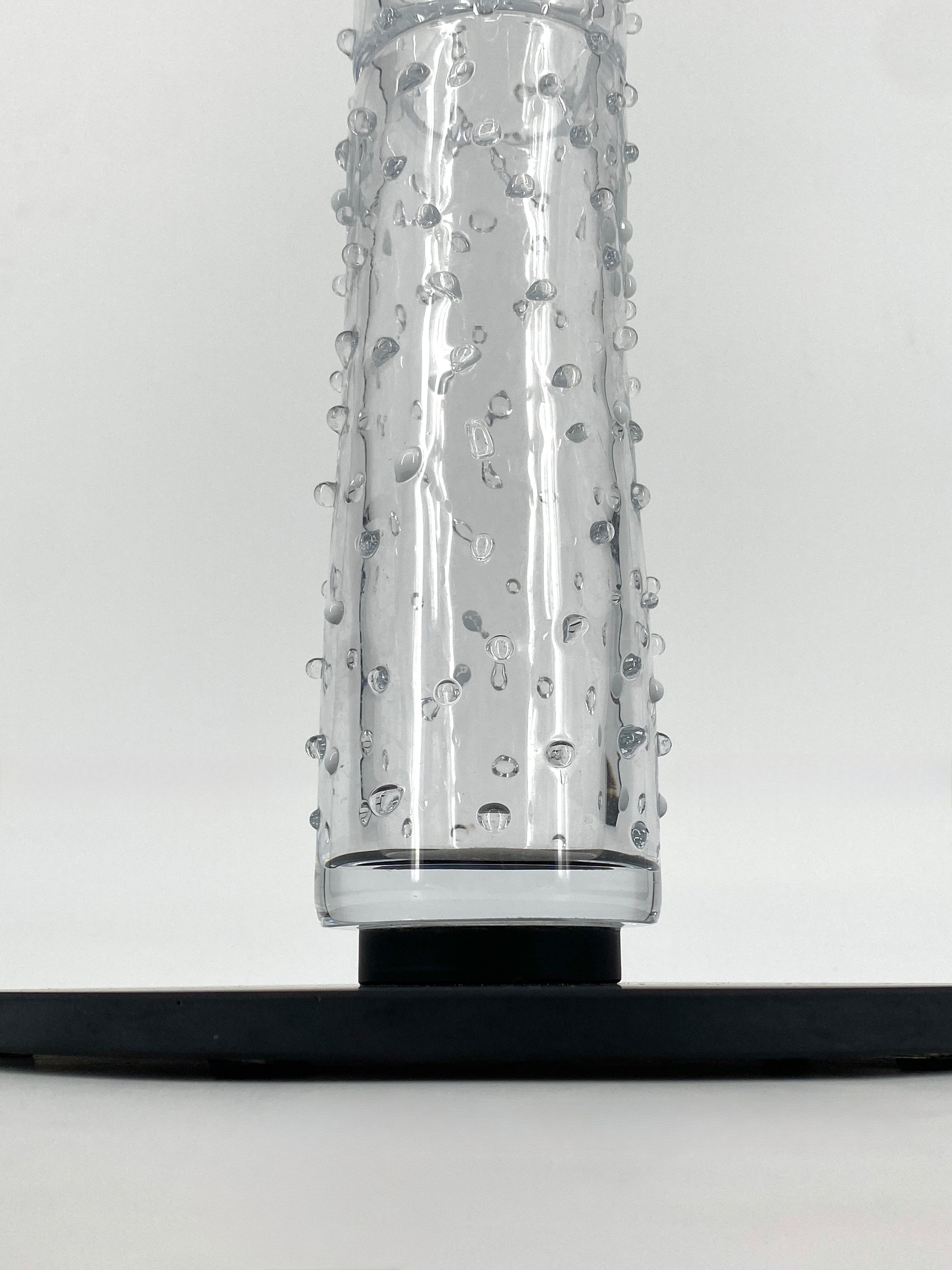 * aus farblosem, mundgeblasenem Muranoglas mit transparenten und weißen Glastropfen