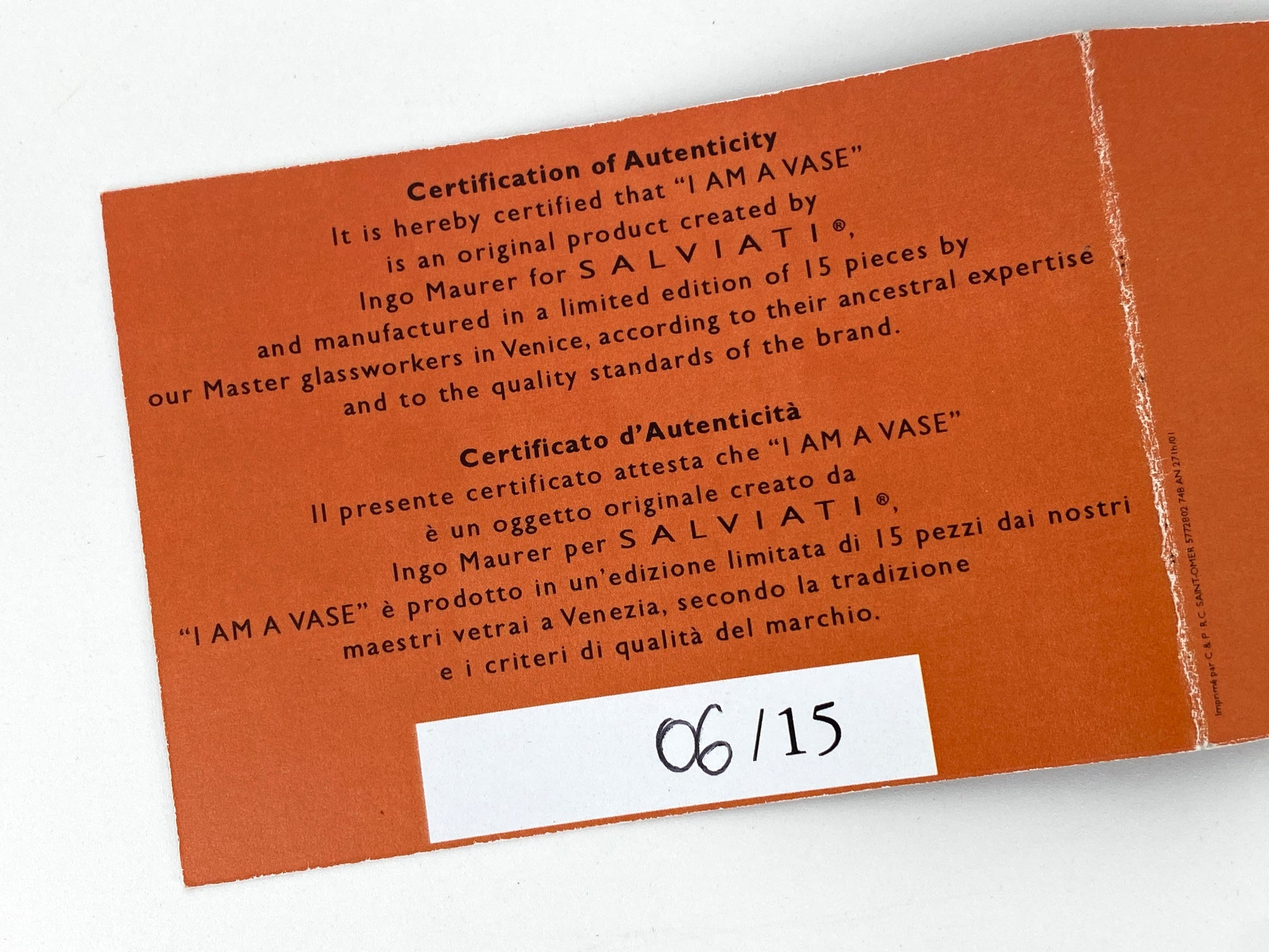 Signierte und nummerierte Glasskulptur / Glasvase "I am a Vase" von Ingo Maurer für Salviati, 2001