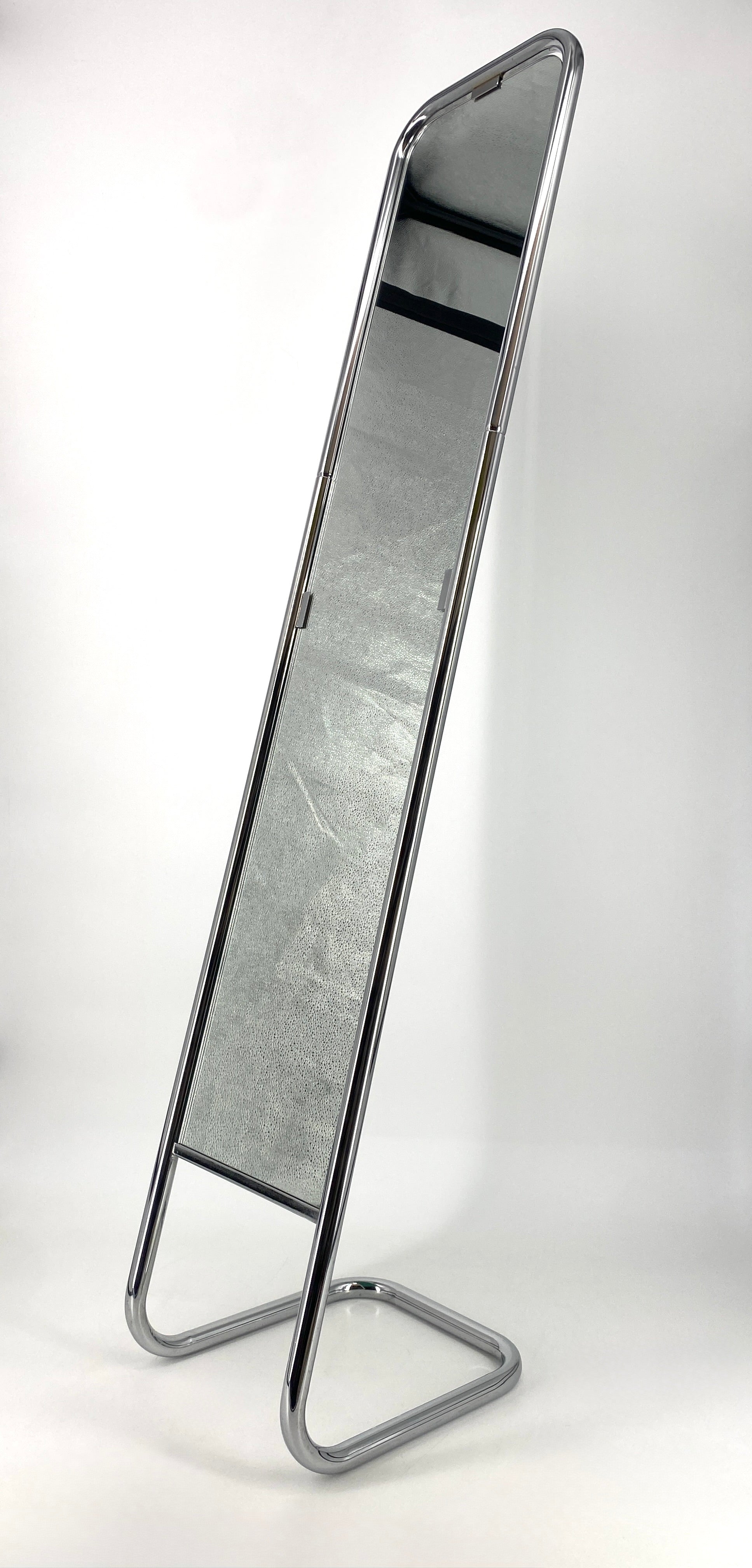 *STANDSPIEGEL BODENSPIEGEL STAHLROHR VERCHROMT 70ER SILBER