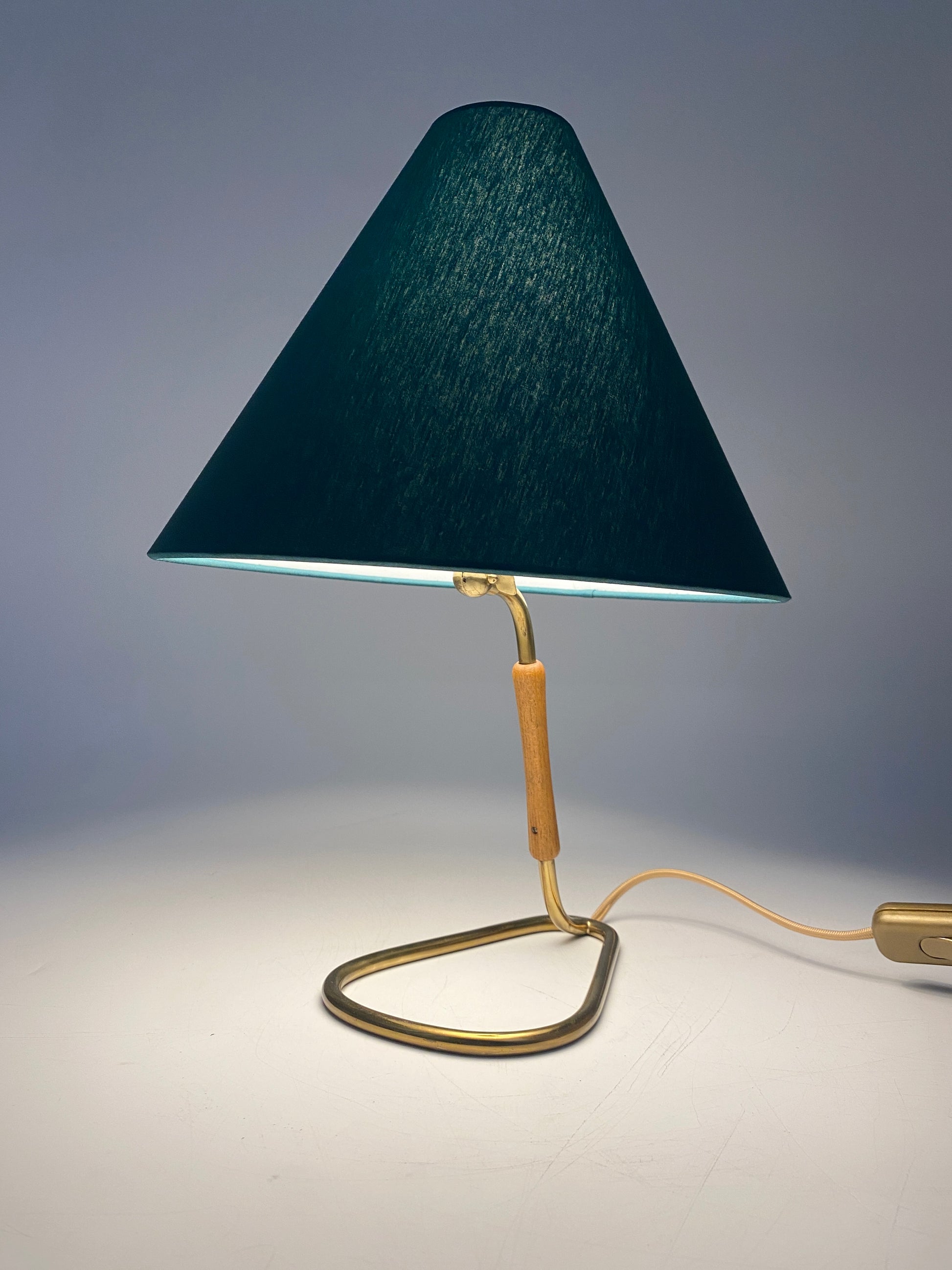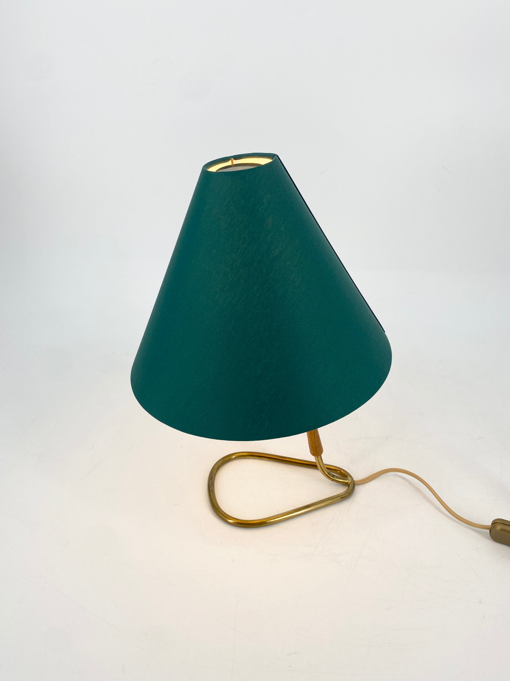 Tischlampe mit Messingfuß, 50er Jahre, Grün