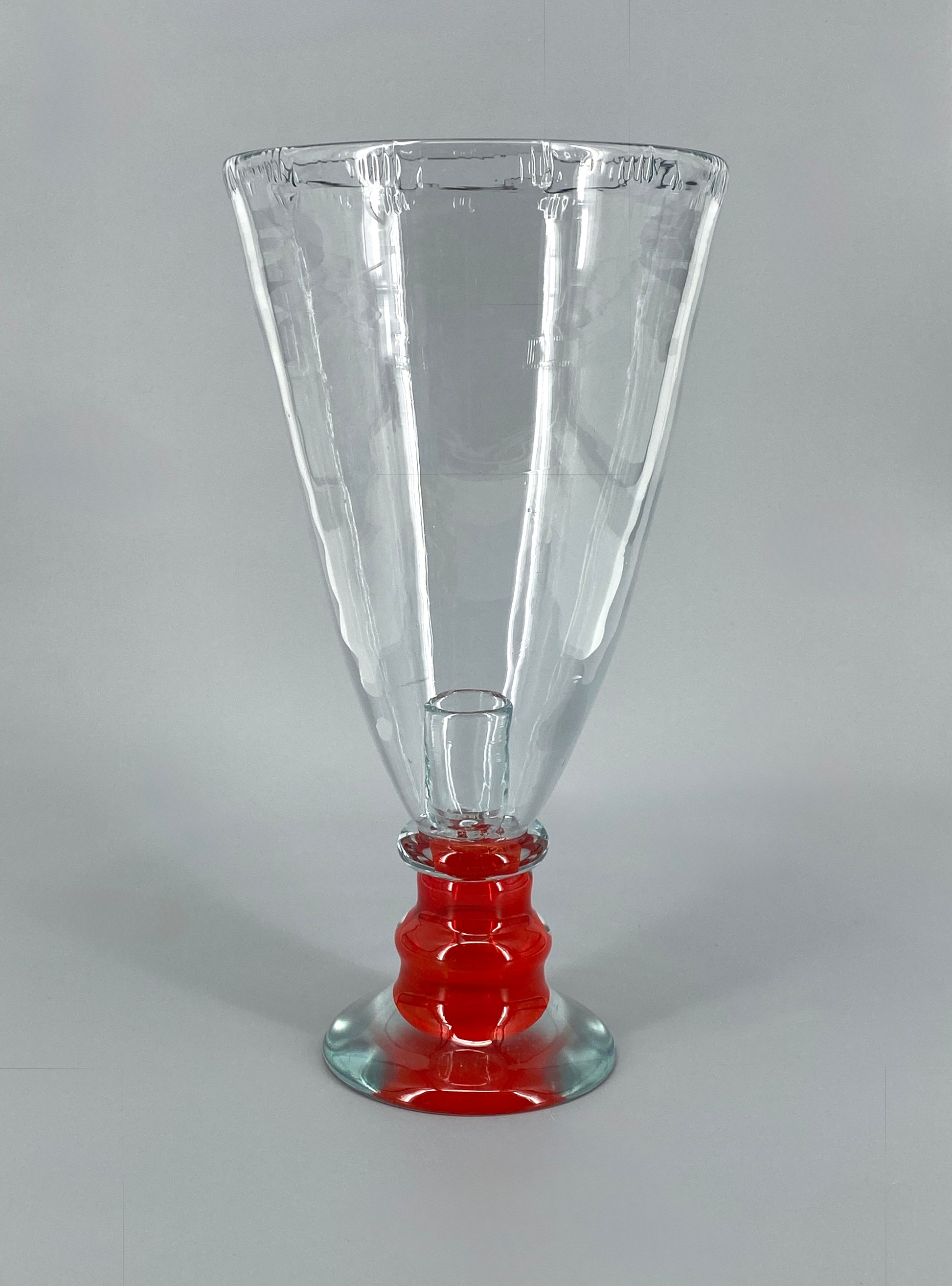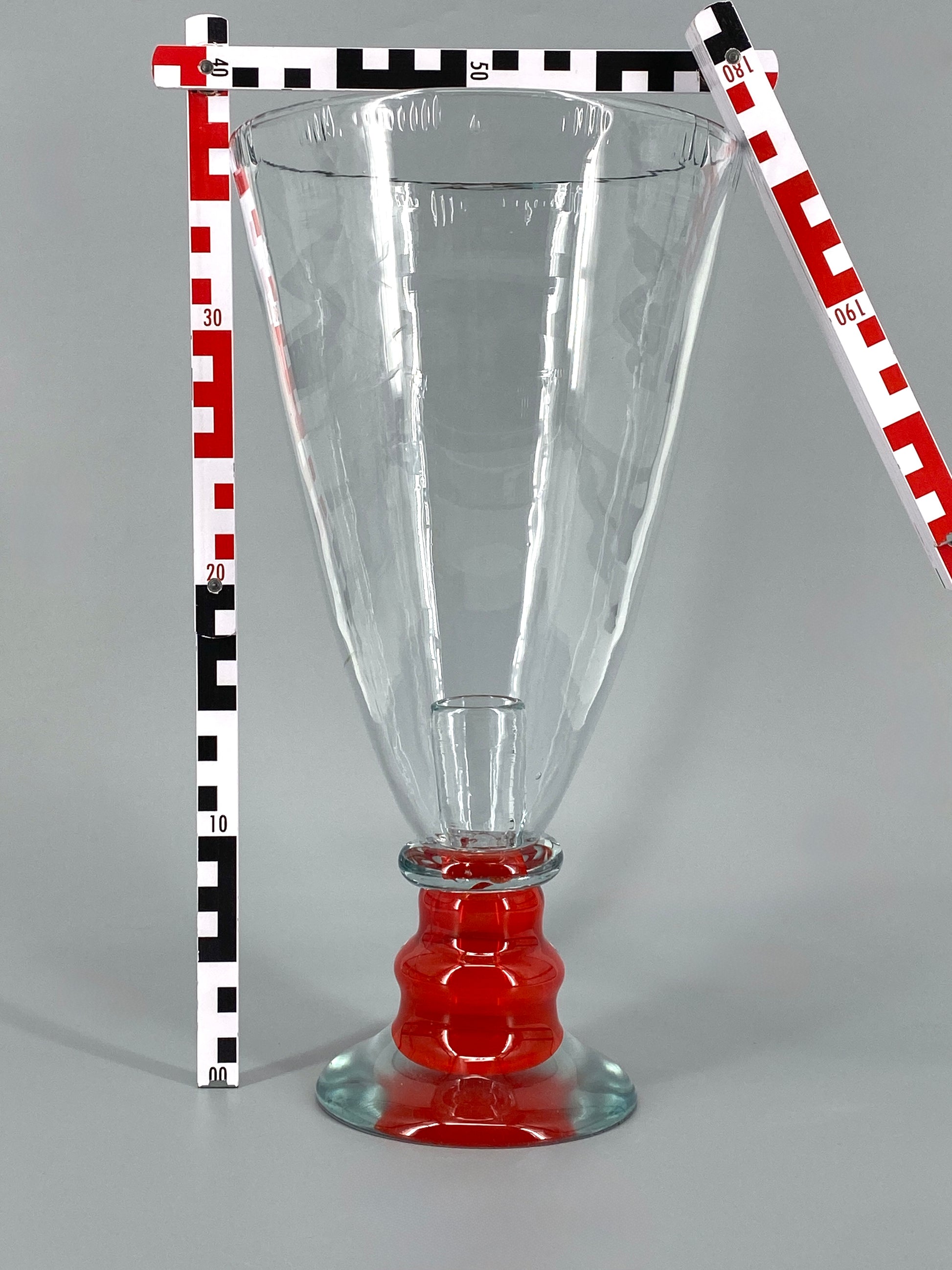 Vase oder Kerzenhalter aus rotem und transparentem Muranoglas, kelchförmig, handgefertigt