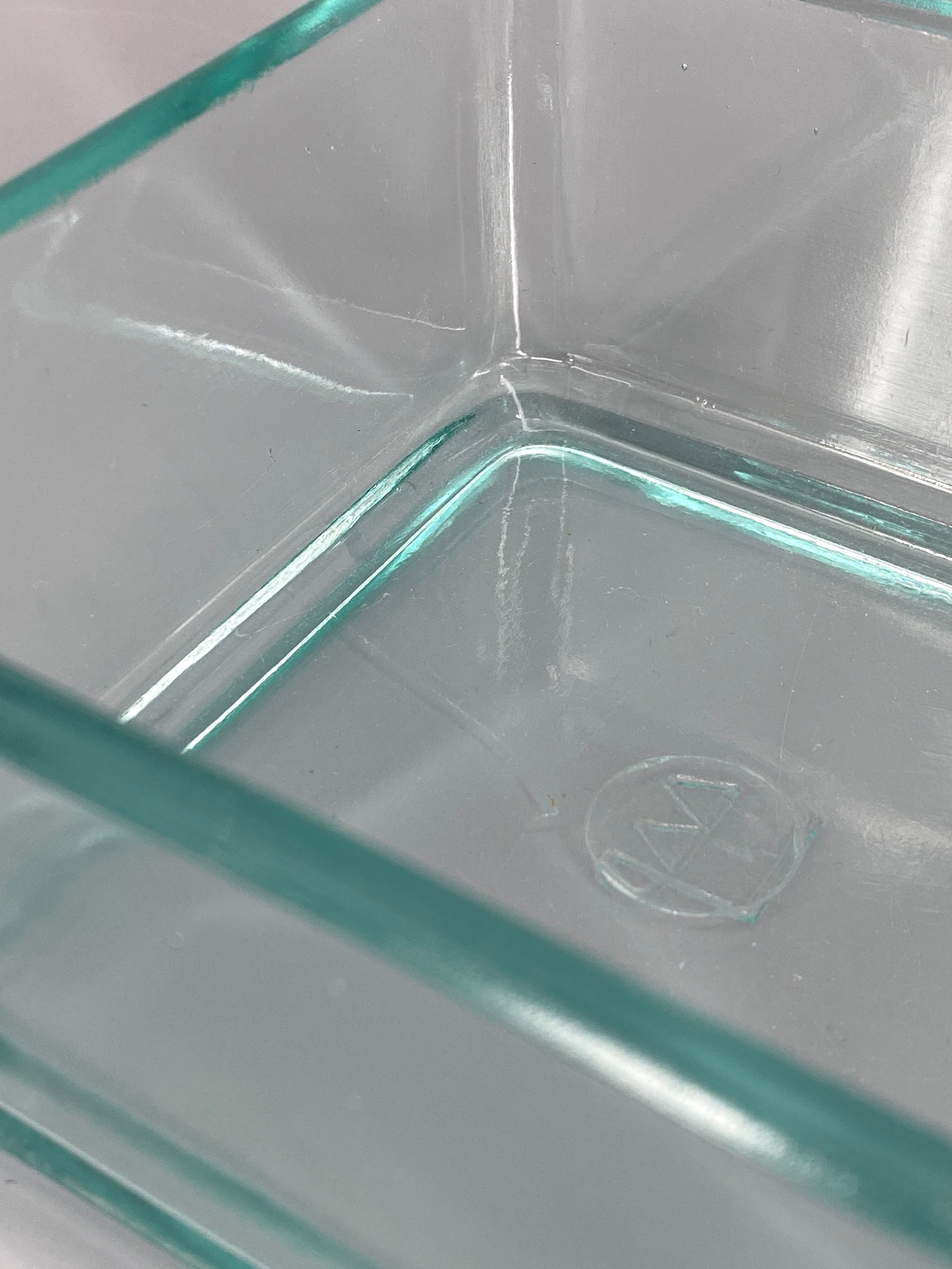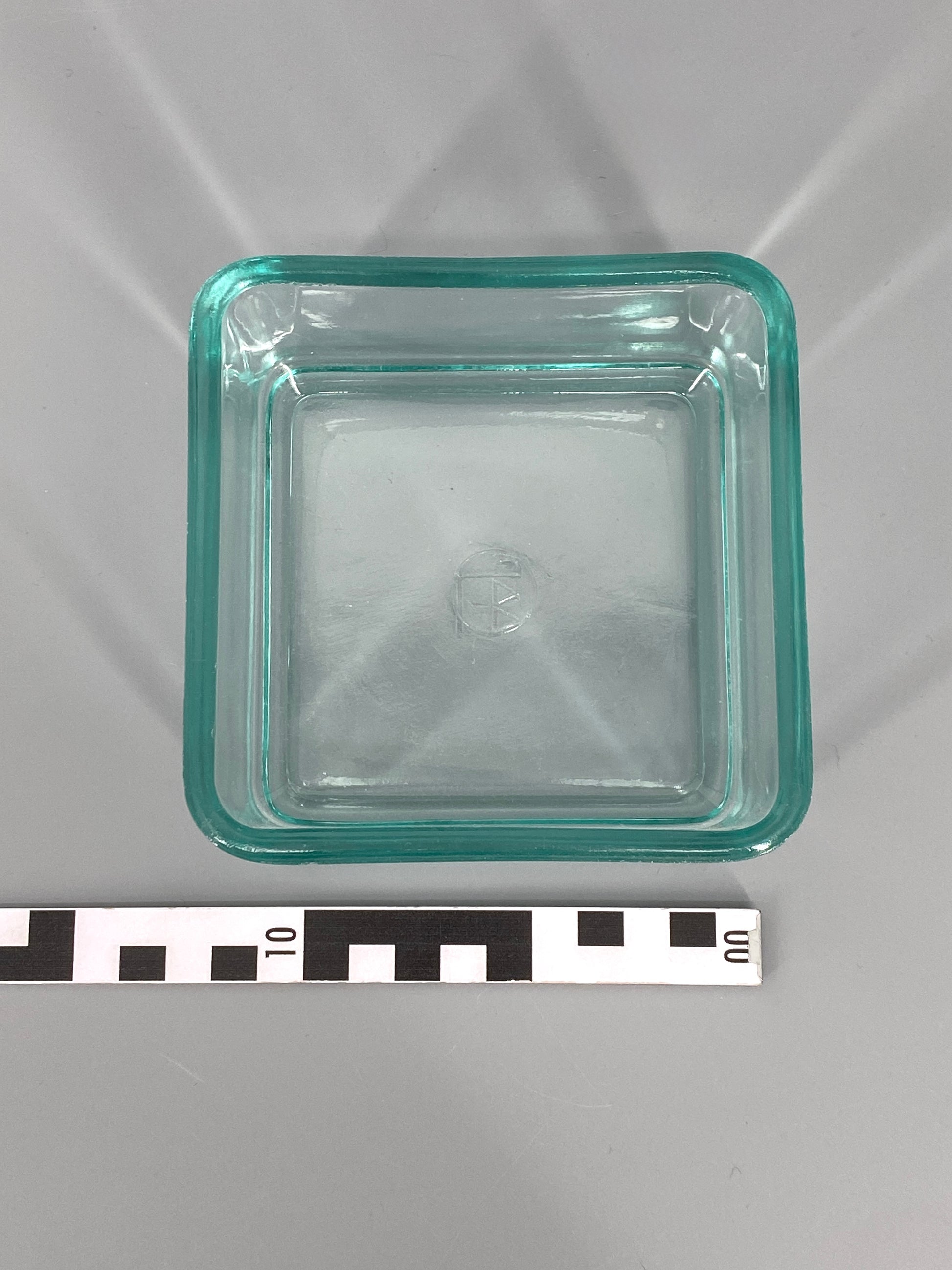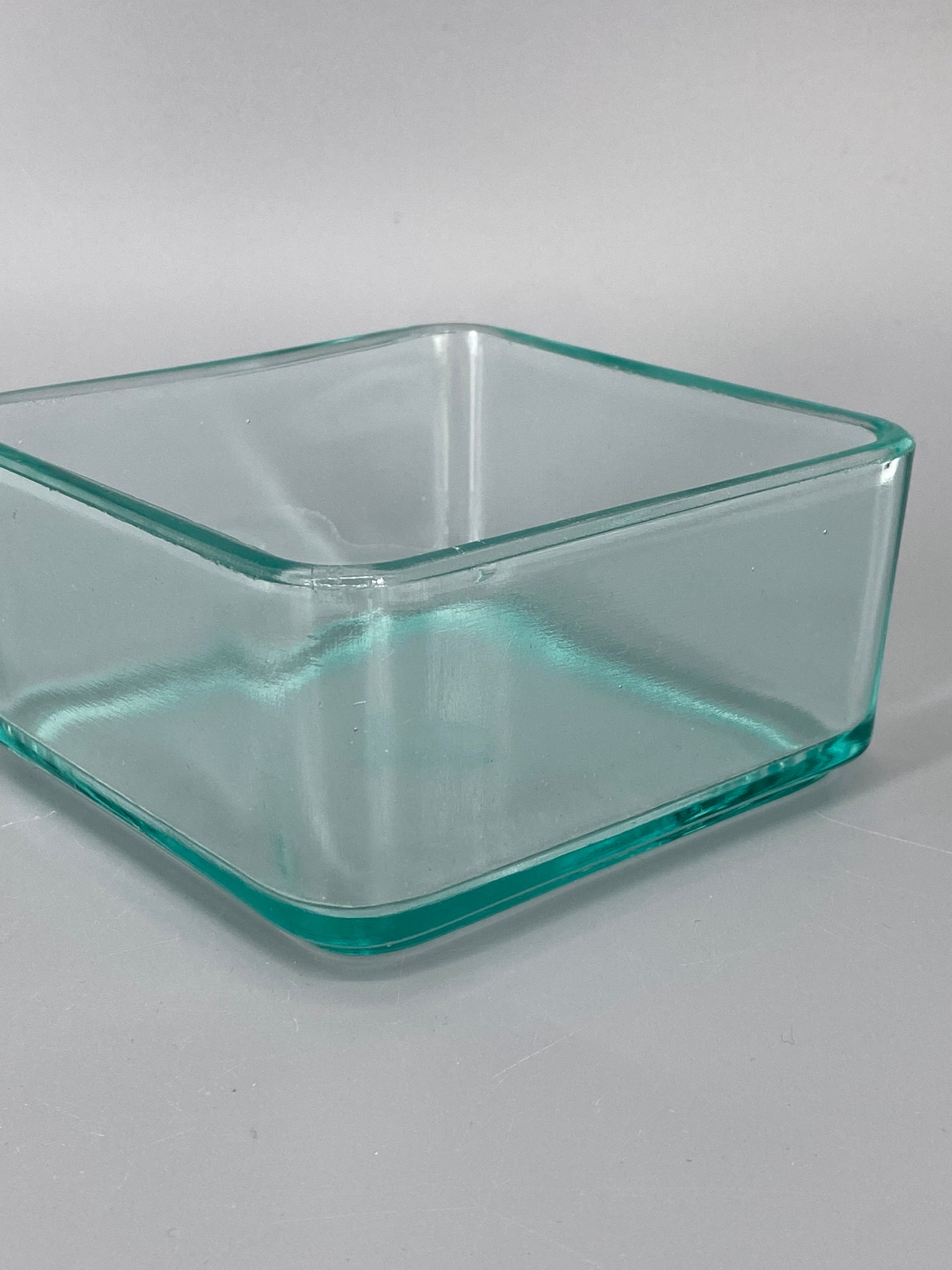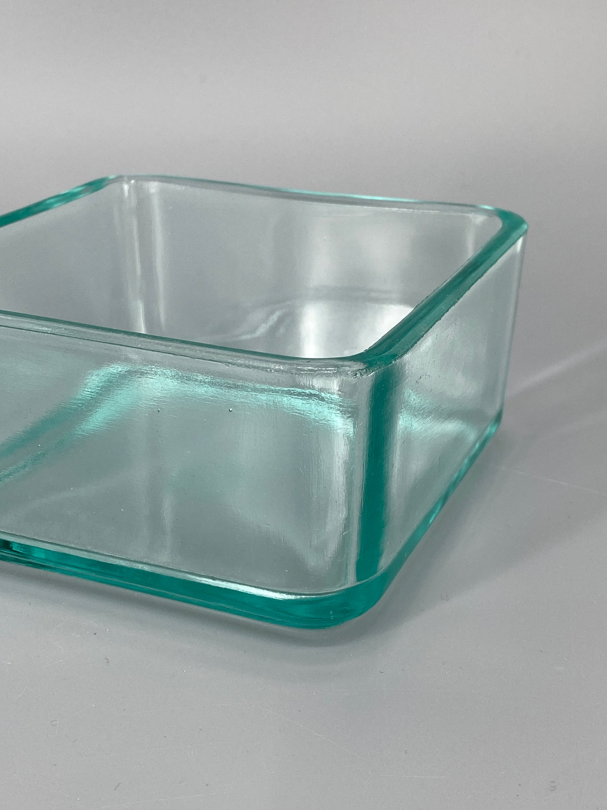 * VINTAGE GLAS DOSE STAPELBAR QUADRATISCH TÜRKIS DESIGN