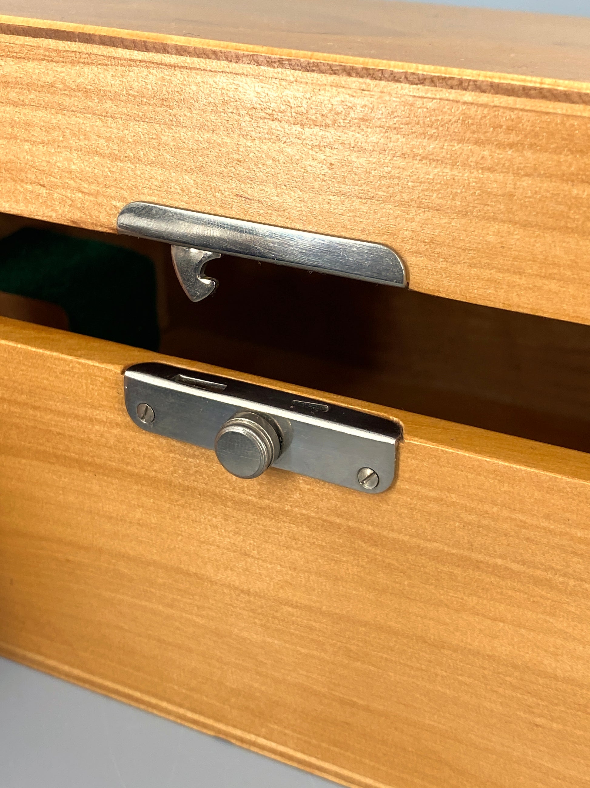 * von innen im Deckel fehlt eine kleines Stück des Holzes, siehe Fotos