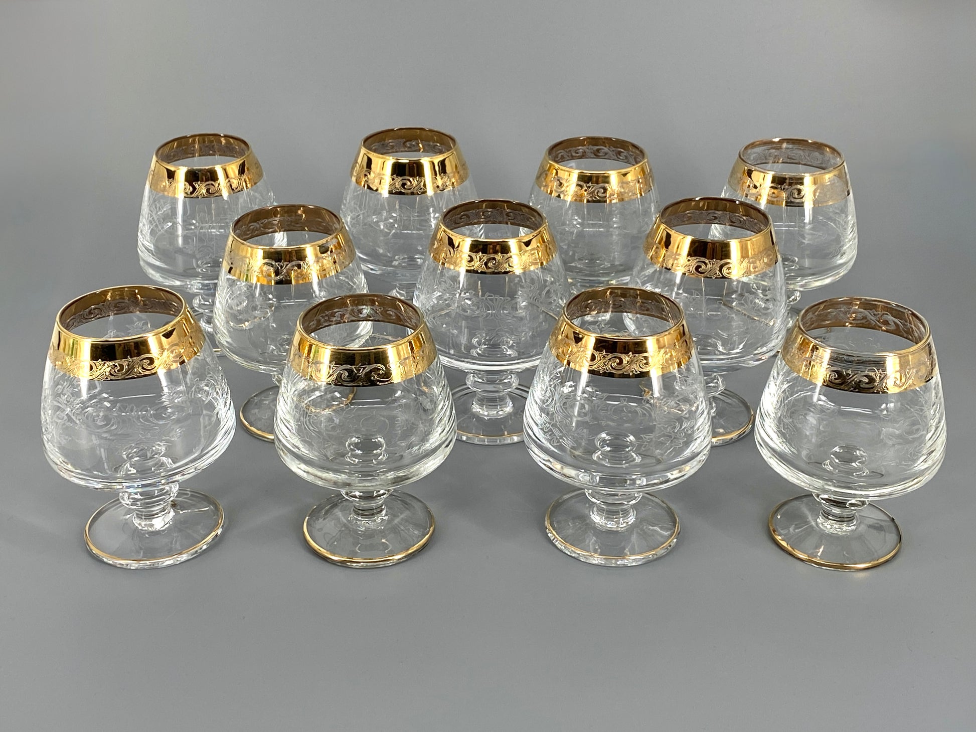 * 11x GLÄSER MURANOGLAS MEDICI GOLDRAND GRAVUR WEINBRAND COGNAC VINTAGE ITALIEN
