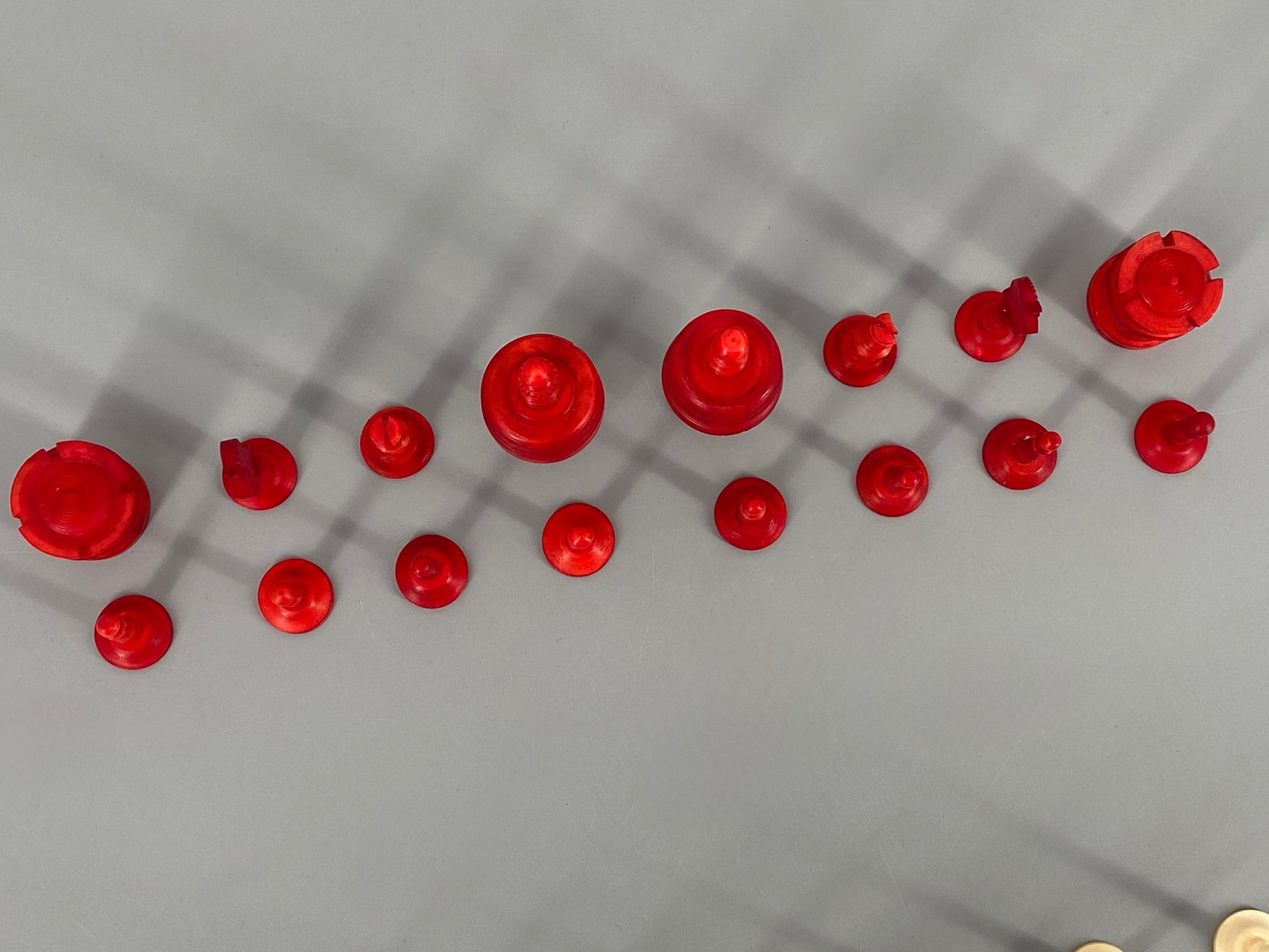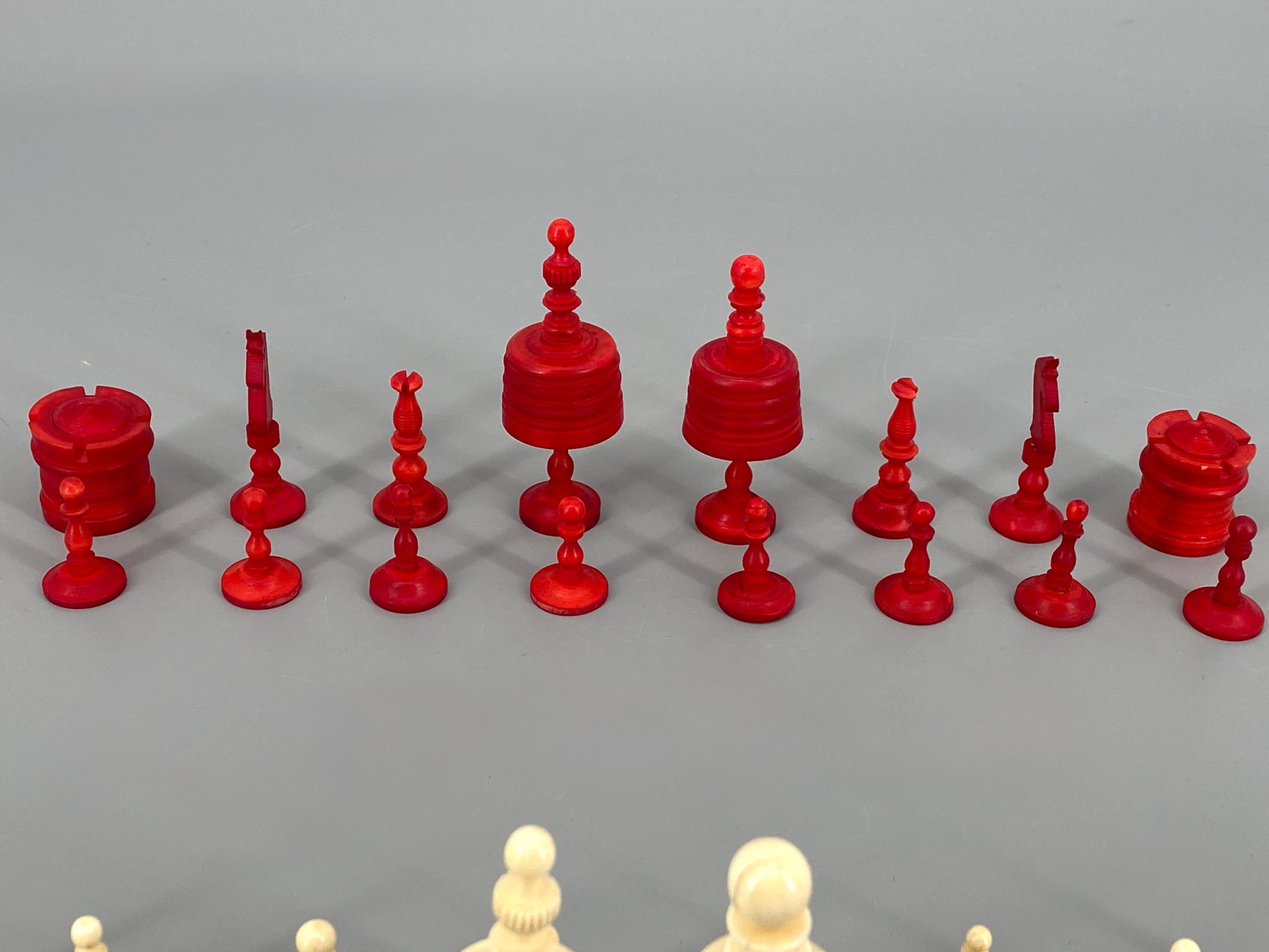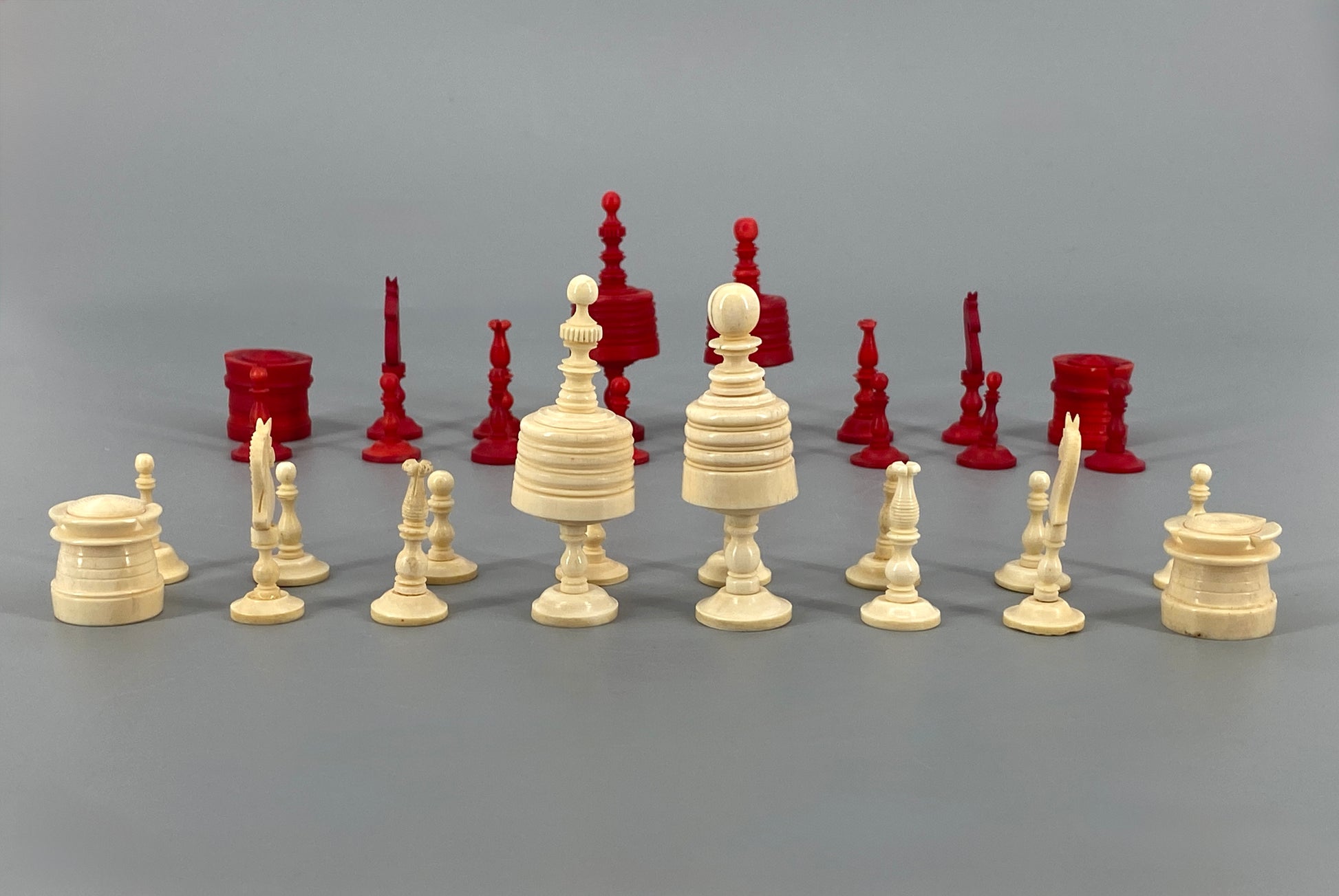 Vollständiges Set Schachfiguren aus Bein, 19. Jahrhundert
