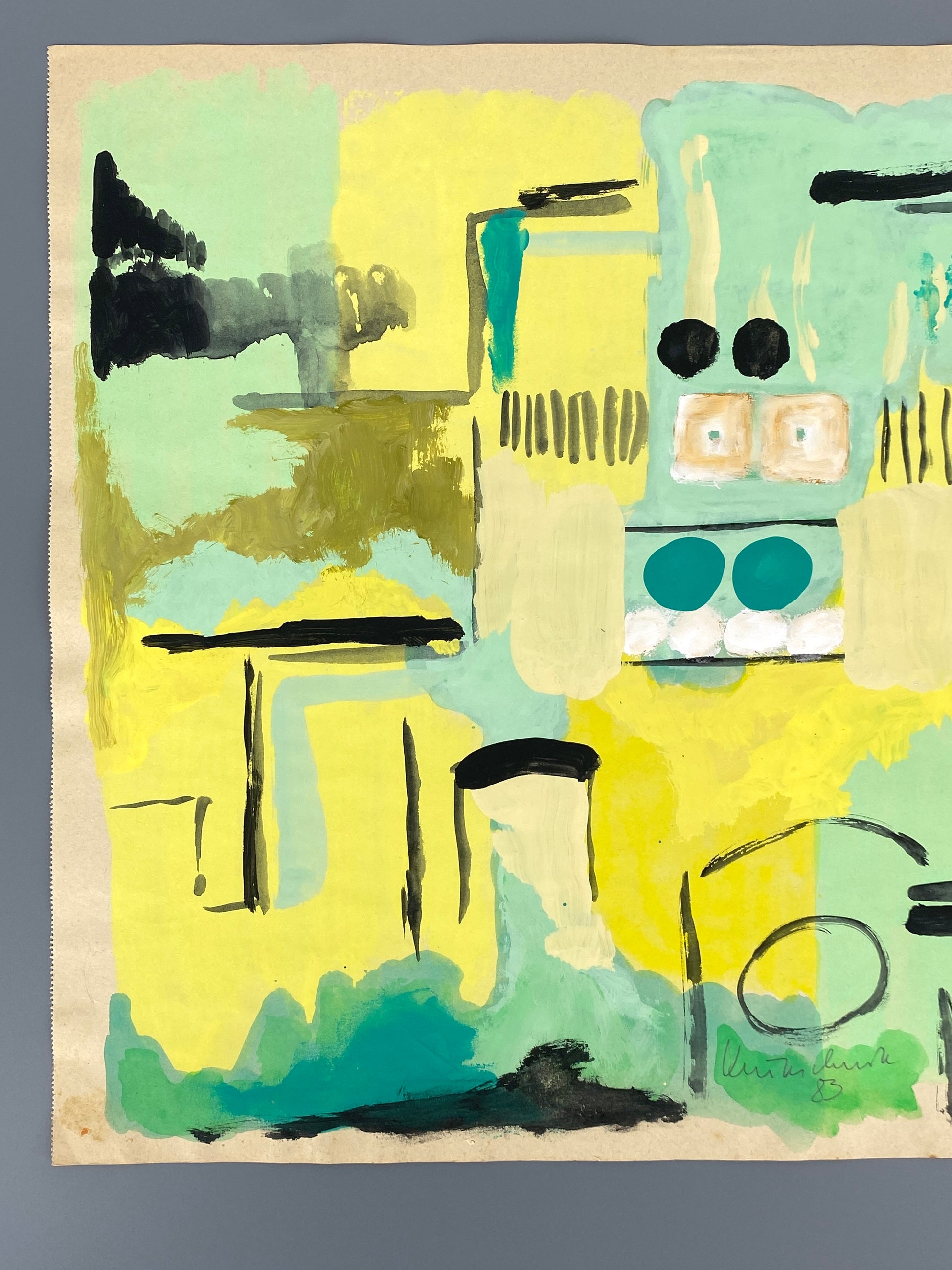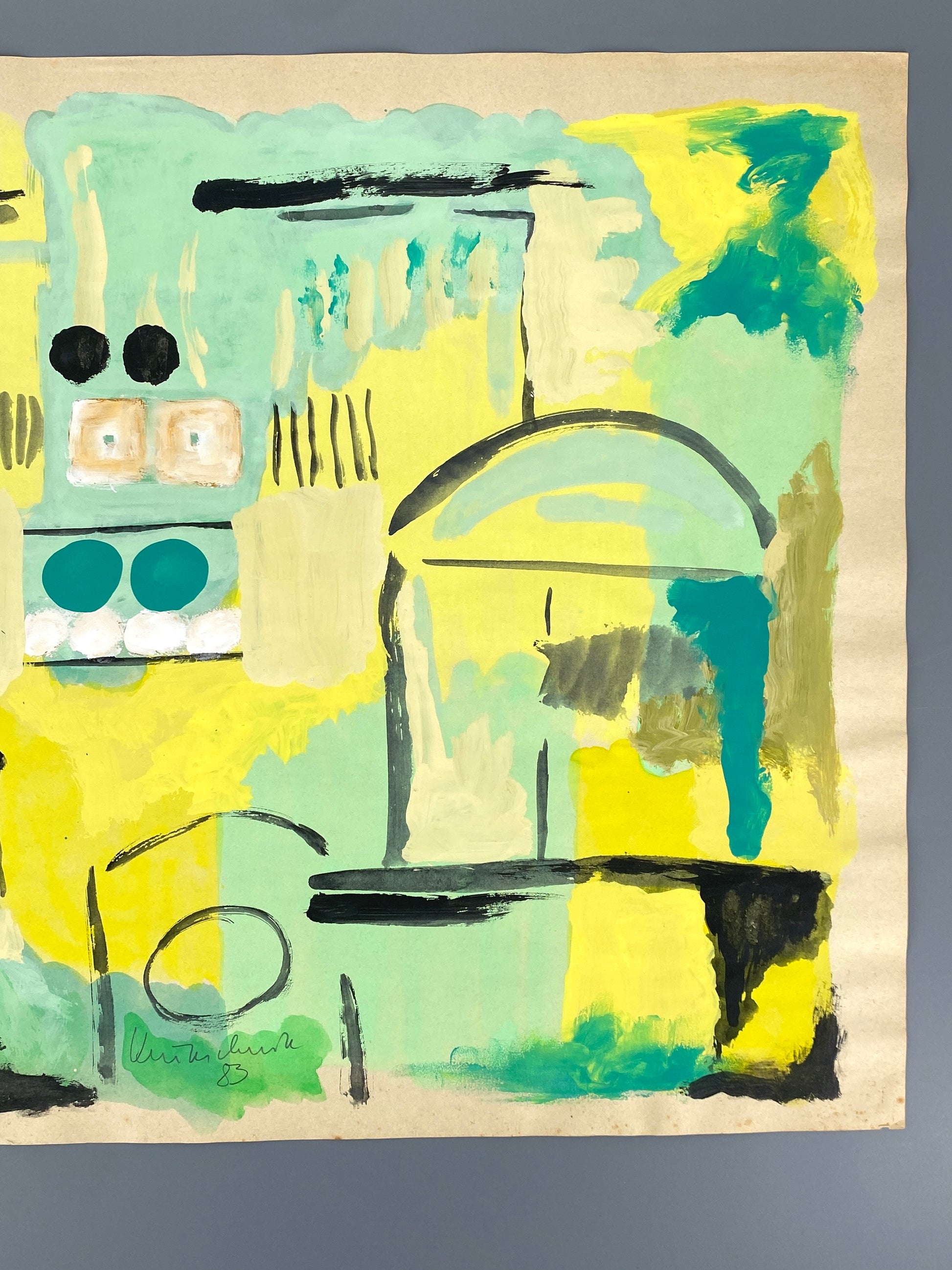 Dekoratives Gouachegemälde von Ernst Jörg Kruttschnitt, Bonn 1983, Unikat, signiert