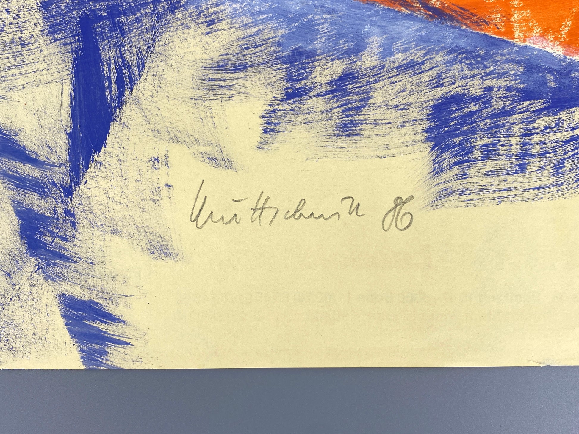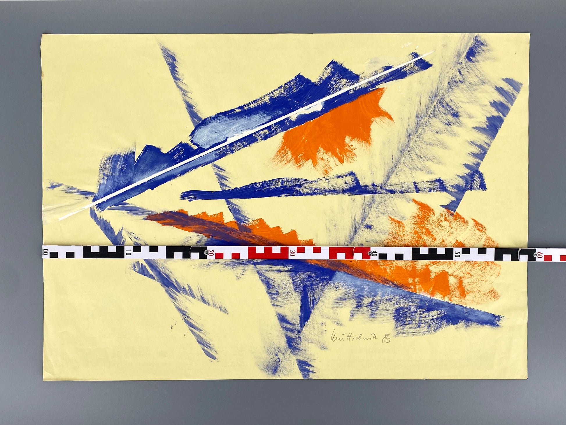 Dekoratives Gouachegemälde von Ernst Jörg Kruttschnitt, Bonn 1986, Unikat, signiert
