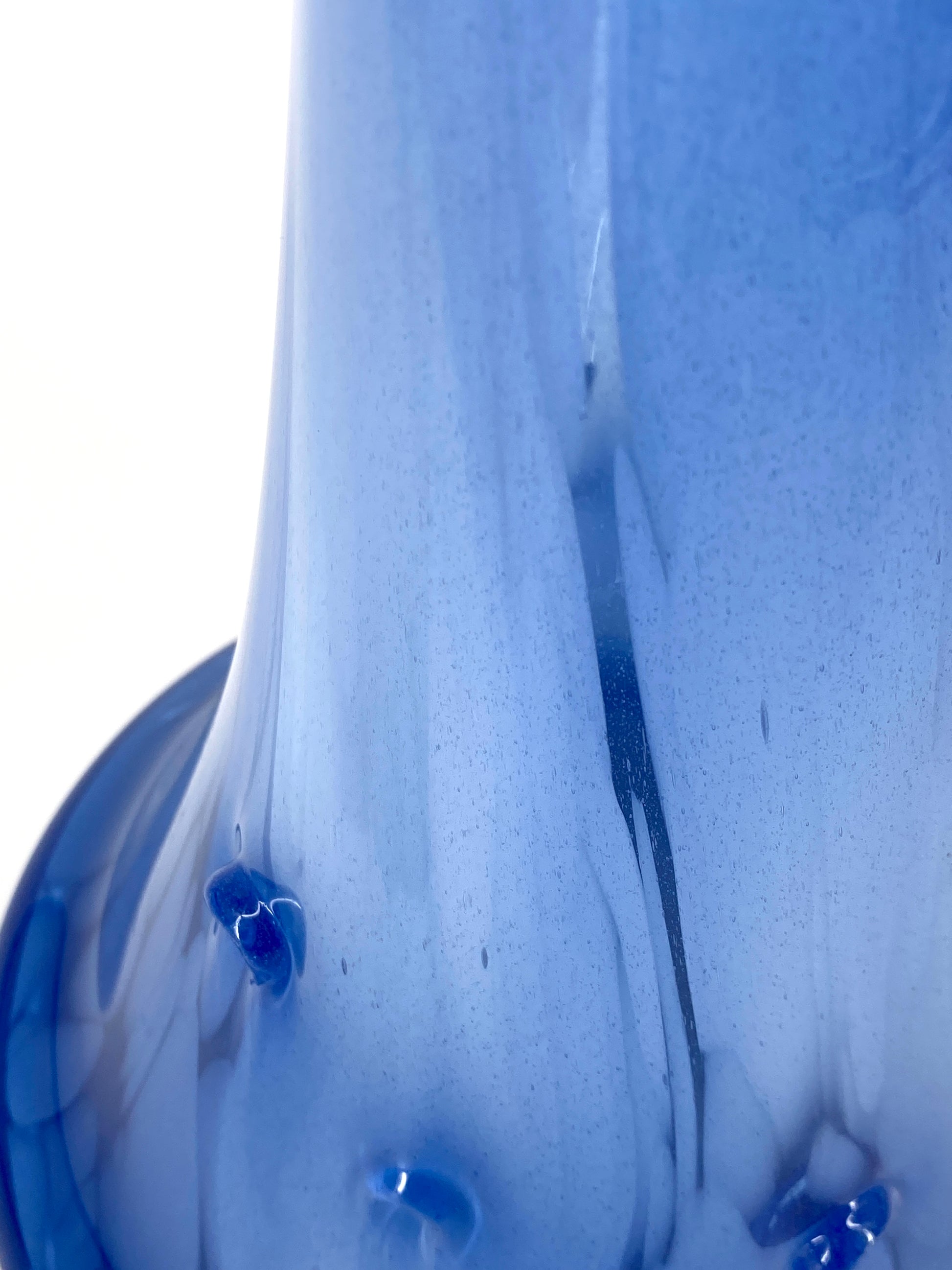 Große Glasvase mit weißem Marmormuster im Glas, Handarbeit von J. Bencal, Poland 60/70er