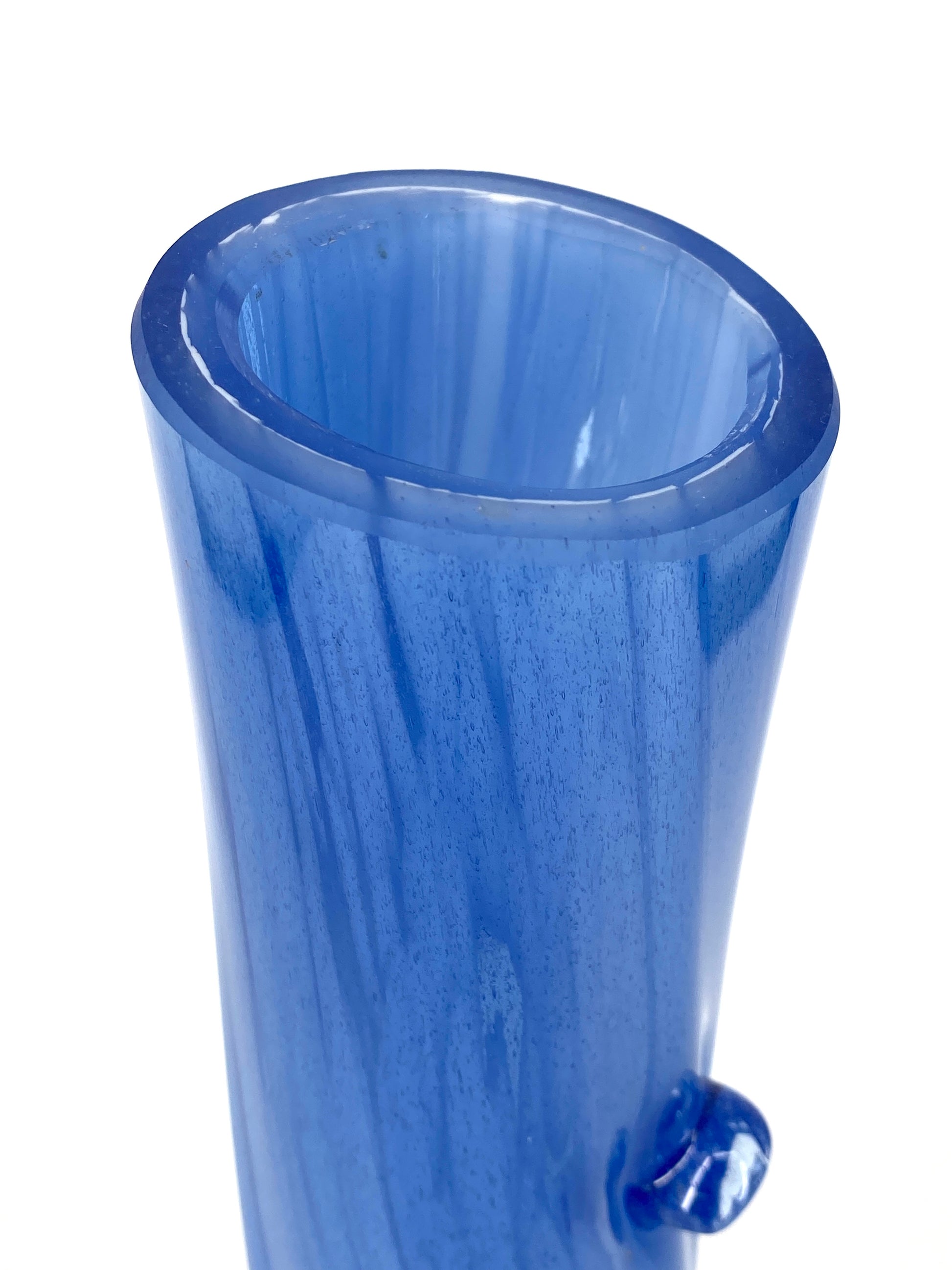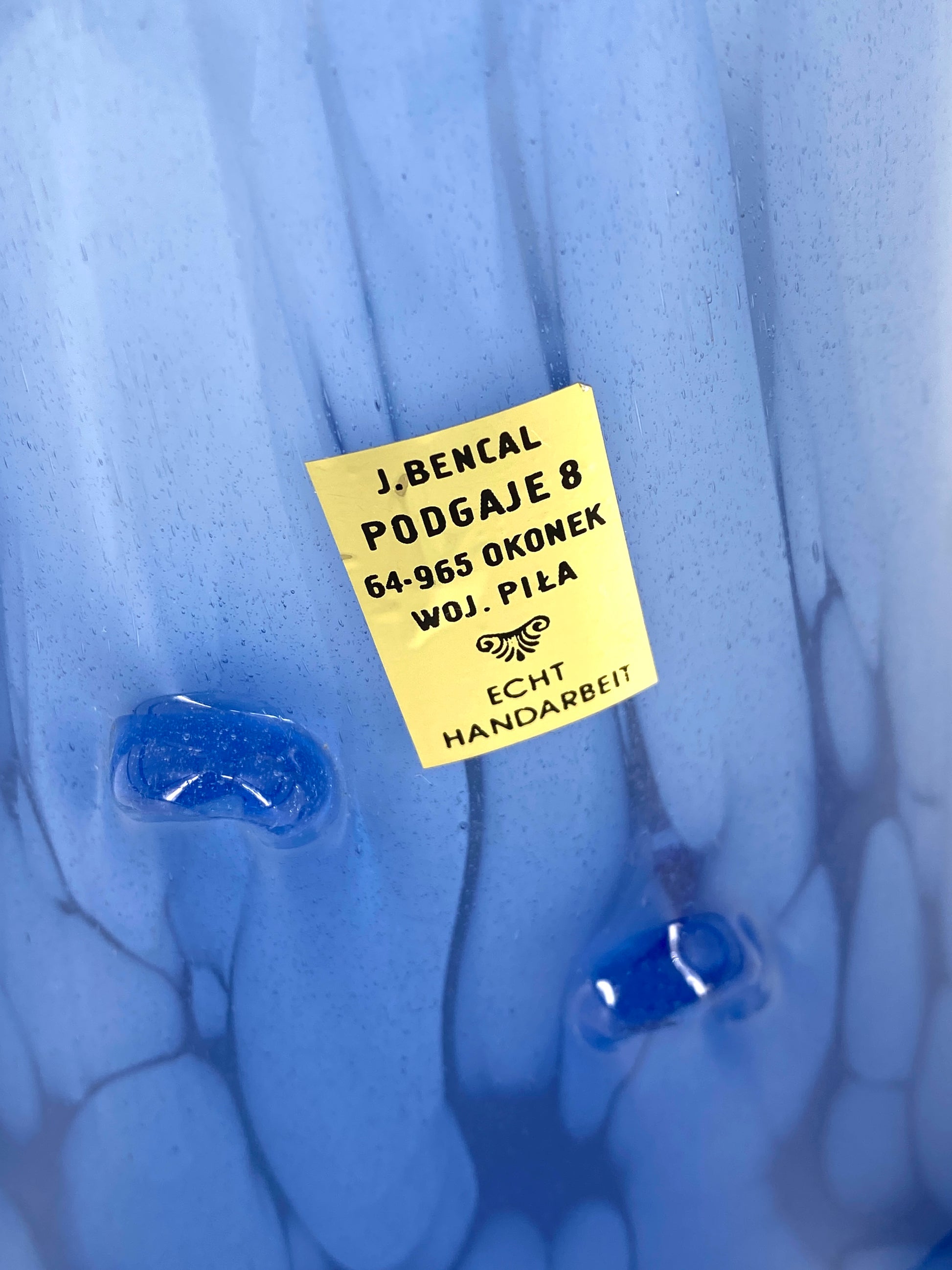 * GROßE BLAUE GLASVASE MUNDGEBLASEN J. BENCAL POLEN VINTAGE